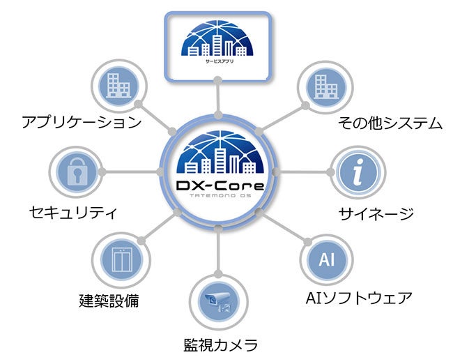 清水建設の建物OS「DX-Core」は、こうした課題を解決するために開発された建物運用のためのプラットフォームです。建物とデジタルを融合させ、各種設備機器同士の連携させることで新しいサービスを生み出すことを可能にしています。
