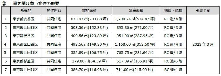 本契約は、2物件の売却を追加し締結する不動産の売買契約に基づき、2022年3月30日に土地の引渡しを行う7物件について、建物の工事請負契約を締結するものです。