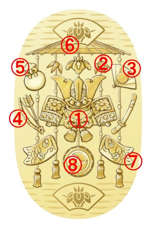 純金小判額「桃の節句」と純金小判額「端午の節句」は、純金約20gを使用した純金小判に、小判の伝統的な茣蓙目(ござめ)模様とたくさんの縁起の良い節句のモチーフを賑やかにあしらい額装したアイテムです。伝統的な節句のモチーフが持つ意味や、昔から受け継がれてきたメッセージを大切に、男児や女児の誕生にお祝いの気持ちを込め、華やかな小判に仕上げました。