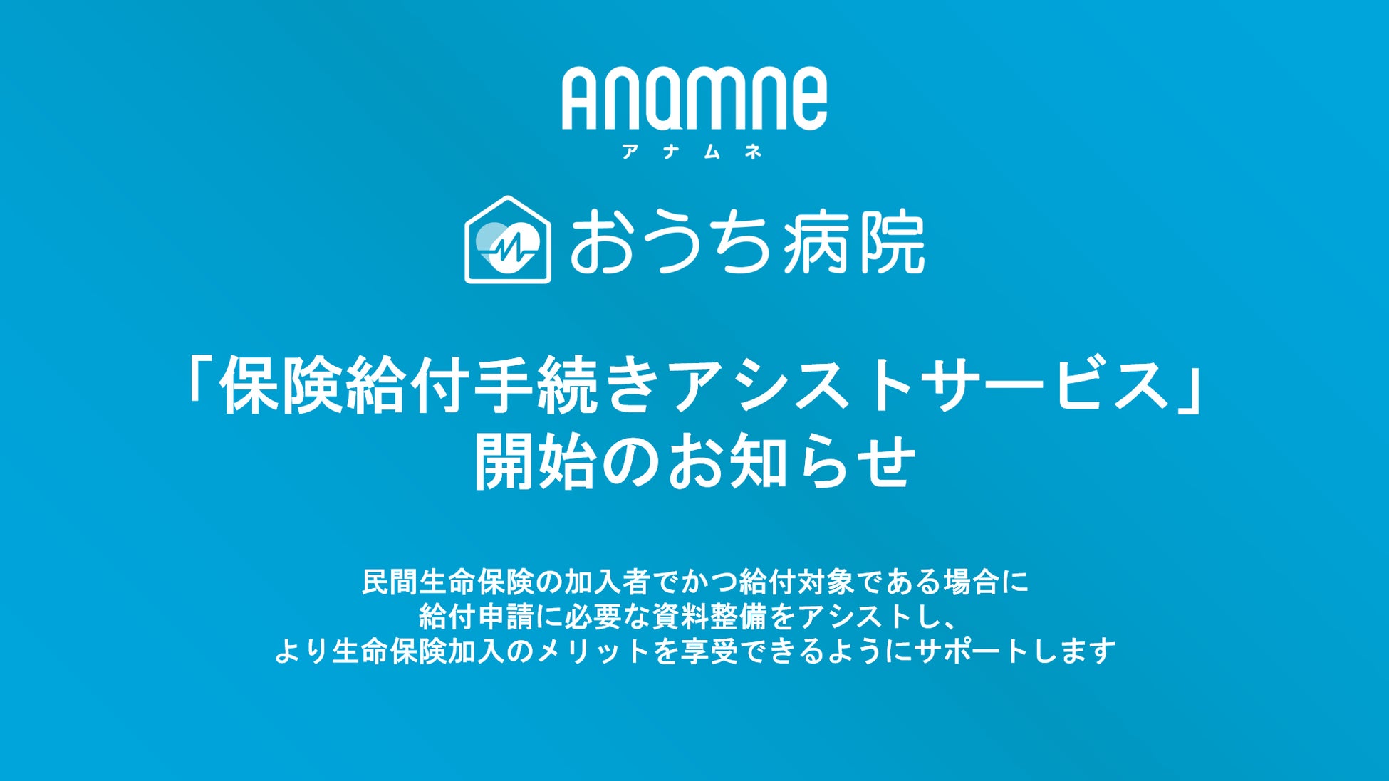 アナムネ、「おうち病院」オンライン診療の利用者が加入している民間生命保険の「保険給付手続きアシストサービス」を開始