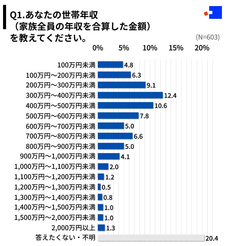 Q1.あなたの世帯年収(家族全員の年収を合算した金額)を教えてください(N=603)