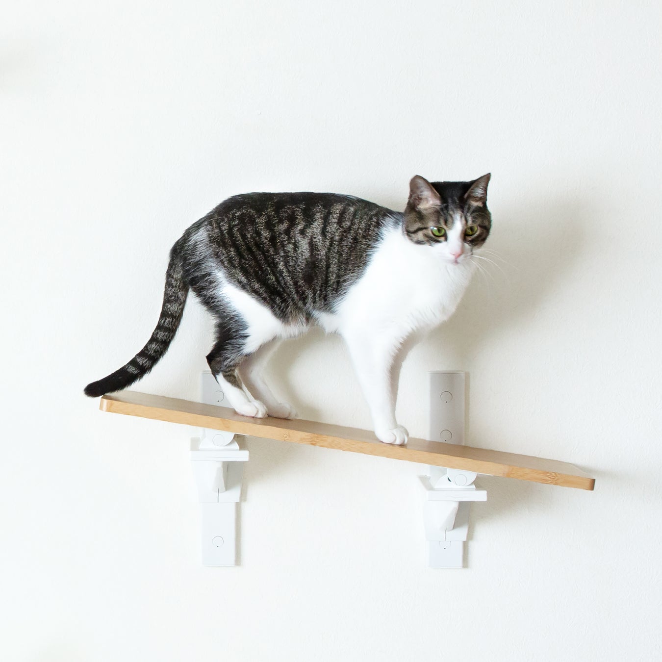 シンプルな「キャットステップ」と、動きのある「キャットウォーク 傾斜タイプ」を組み合わせることで、お部屋の広さや猫の数に合わせたアスレチック空間を構築できます。飽きっぽい猫のためにレイアウトを調整することも容易です。
