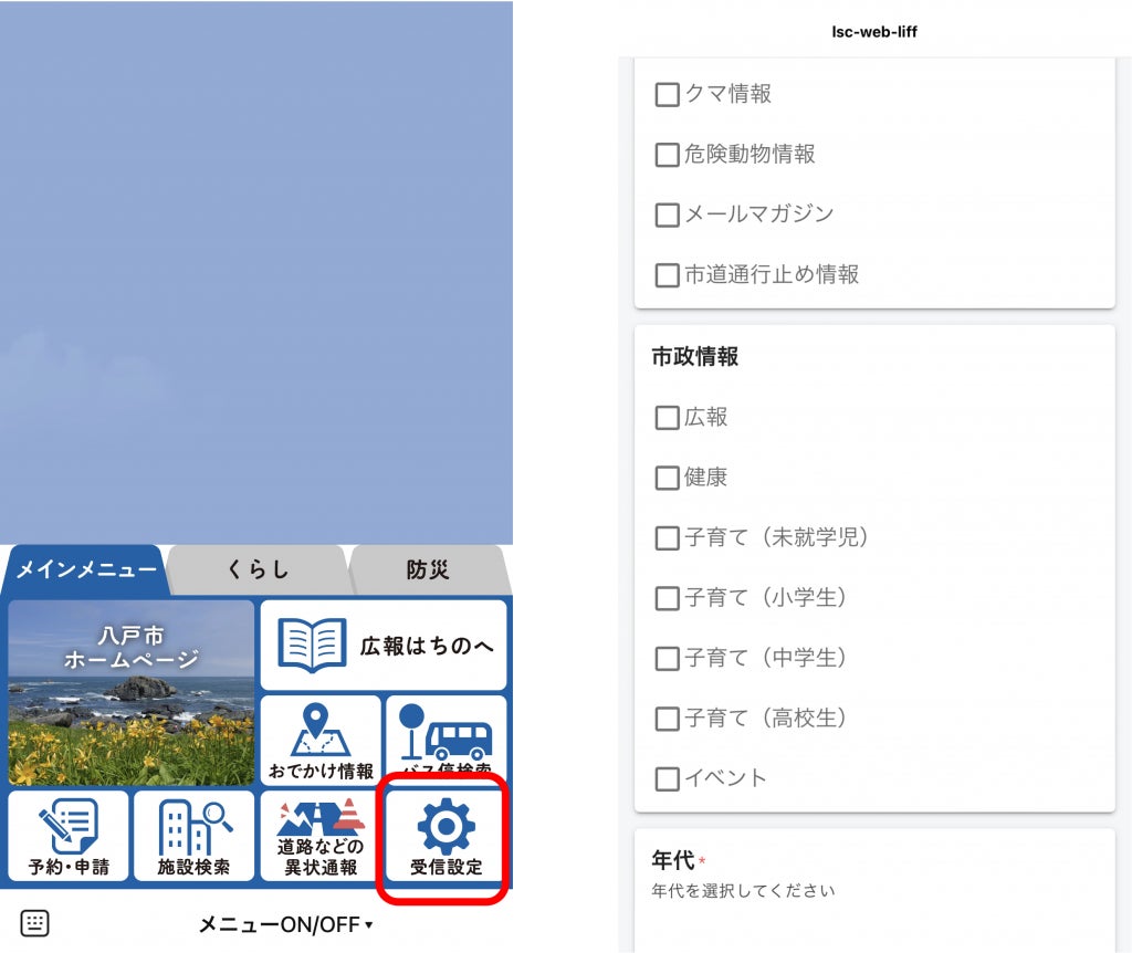 これまではLINEに登録している全ての住民に送られていた配信ですが、リニューアル後からは欲しい配信カテゴリーを選択することができます。