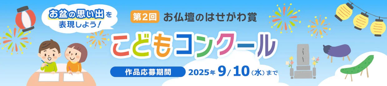 株式会社はせがわ(本社:福岡・東京、代表取締役社長:新貝 三四郎)は、昨年ご好評いただいた「お仏壇のはせがわ賞こどもコンクール」の第2回を開催いたします。今年も「今年のお盆で見たこと・聞いたこと・体験したこと」をテーマにした作品を、全国から募集いたします。