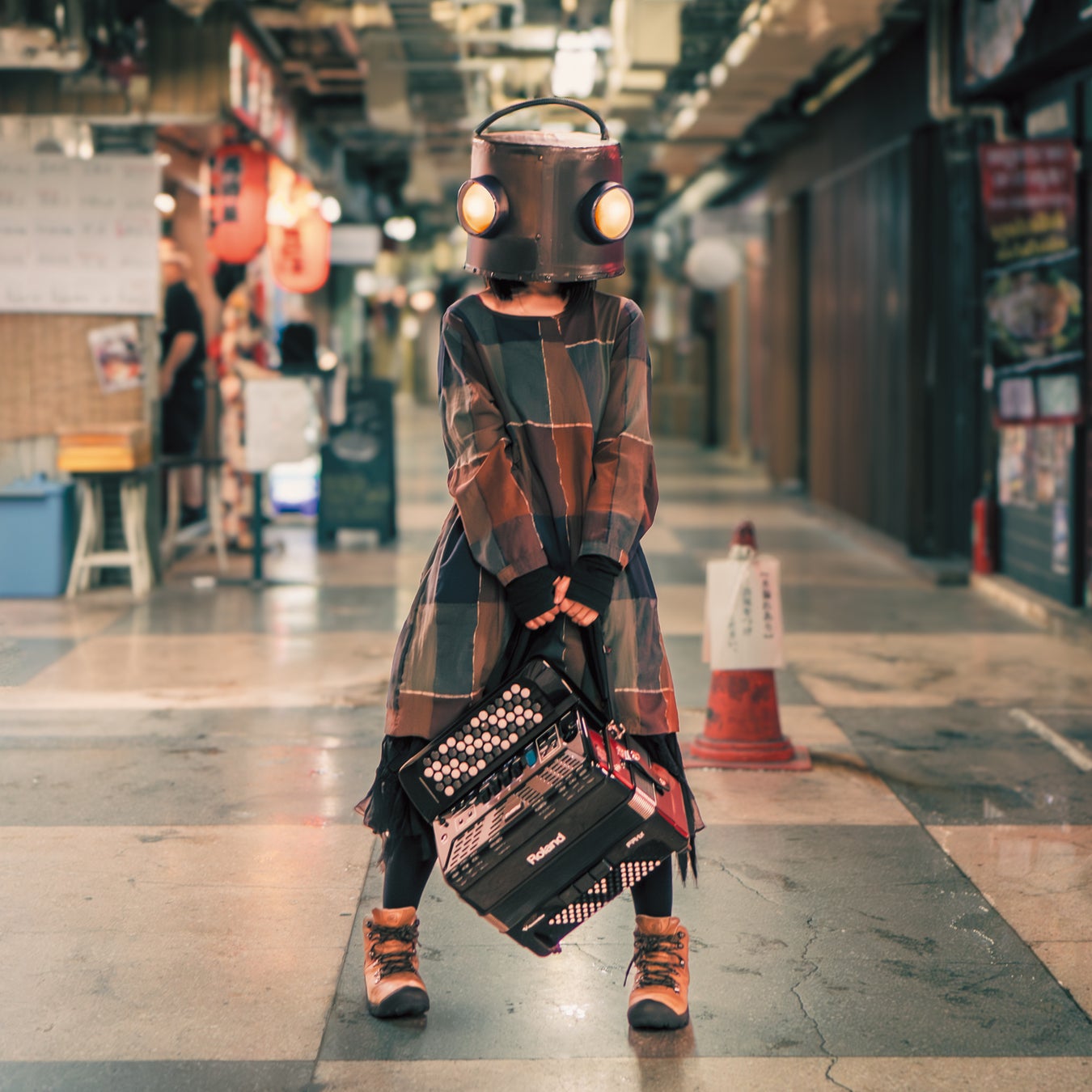 2024年04月にアコーディオンとギターのライブアレンジバージョンのCDをリリース。現在はX、YOUTUBEなどオンラインでの活動の他、個展や主催のアートイベントを開催。またライブを公園や路上など日常空間で行い、現実と空想が混ざったような不思議で独特な世界観を表現したライブパフォーマンスをしている。ジャンルやメディアにとらわれない幅広い活動で、みんなの元気になるように、笑顔たくさんのセカイになるように、ロボット頭は歌い続ける。