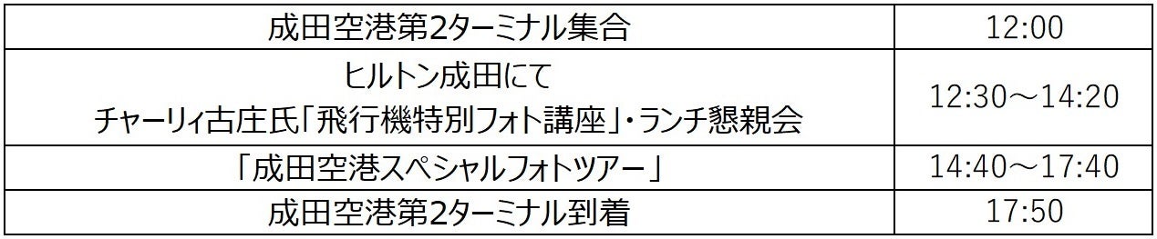 ➢ 講師兼ツアーガイドに航空写真家のチャーリィ古庄氏を迎え「飛行機特別フォト講座」や「ランチ懇