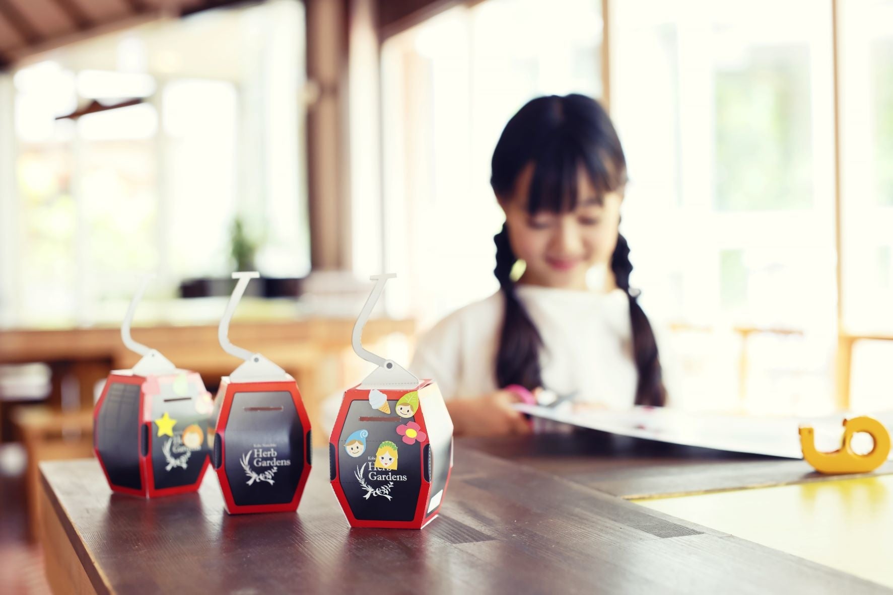 可愛いロープウェイ型のペーパークラフトづくり。完成すると貯金箱にもなります。