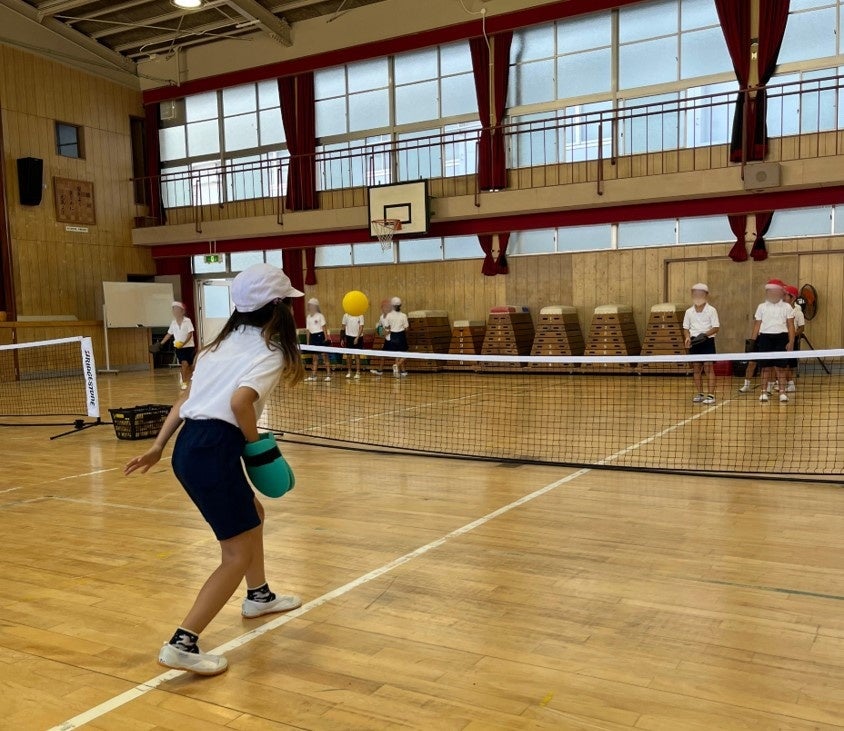 誰でも簡単にテニス特有の面白さを体感できるテニス型ゲーム「テニピン」は、全員が楽しく参加でき、誰もが活躍できることにより児童の自己肯定感向上を目指せるという特徴があります。