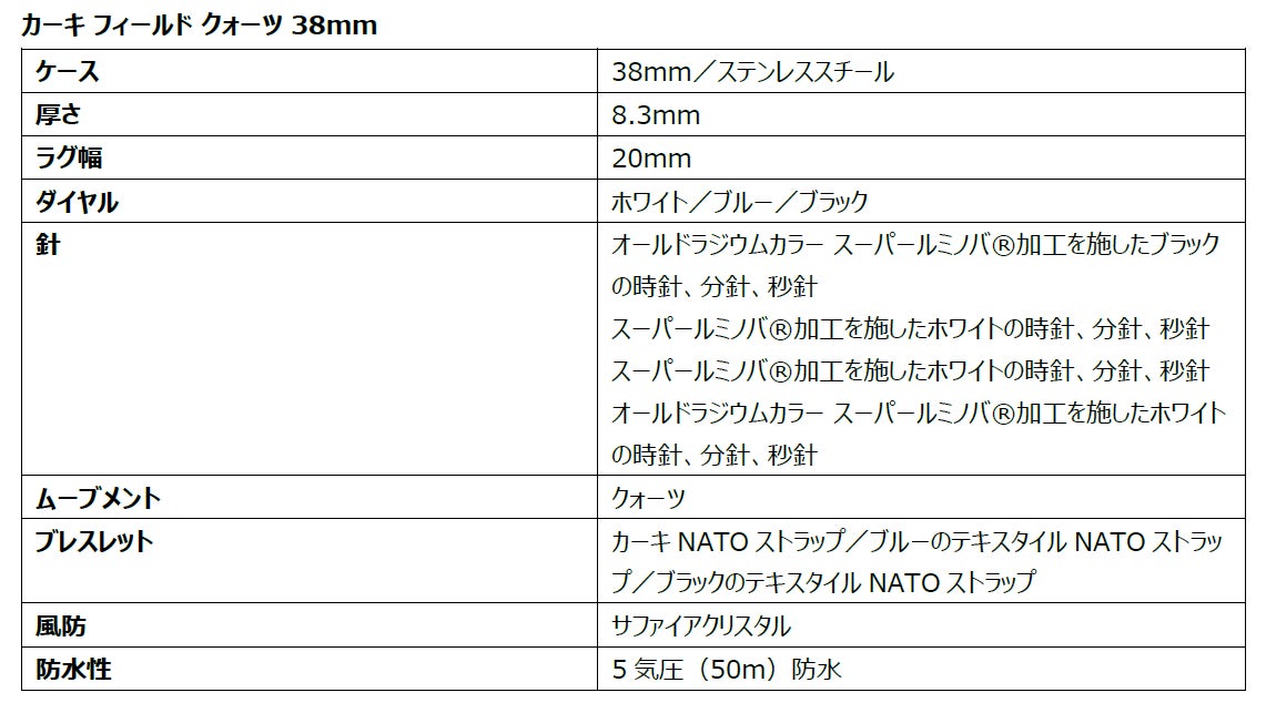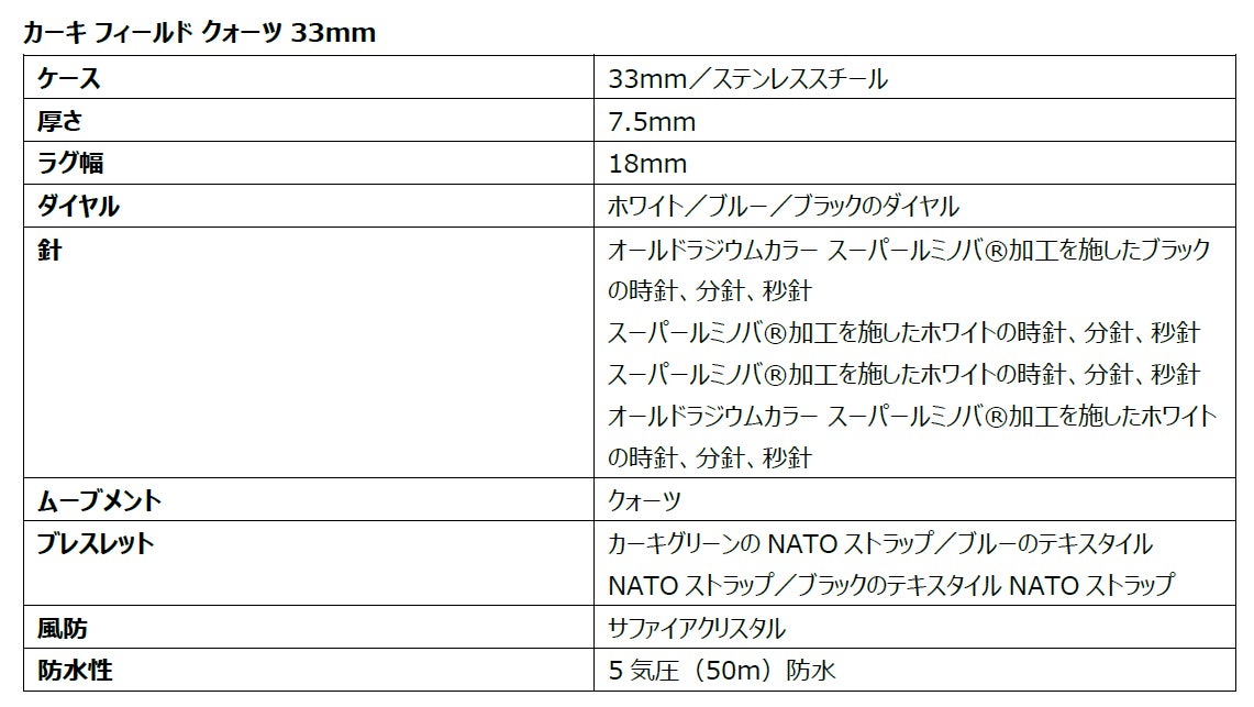 「カーキ フィールド」のオリジンであるミリタリースタイルへのオマージュとして、新しい「カーキ フィールド クォーツ」コレクションは、ミリタリーウェアをモチーフにした配色になっています。