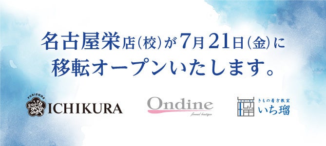 7/21(金) 「ICHIKURA」「オンディーヌ」「きもの着方教室 いち瑠」が移転オープン! <お得なフェア/大抽選会を開催!>
