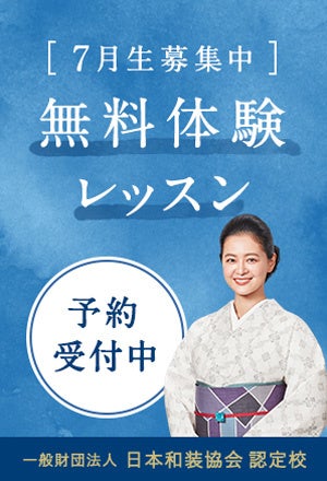 名古屋栄校7月生限定で、オープンキャンペーンを開催しております。今、初級全8回のカリキュラムにお申し込みいただくと、補講チケット2回分をプレゼントいたします。ぜひこの機会にご入会くださいませ。知識、経験豊富な講師陣をはじめ、きもの好きのスタッフがお待ちしております。