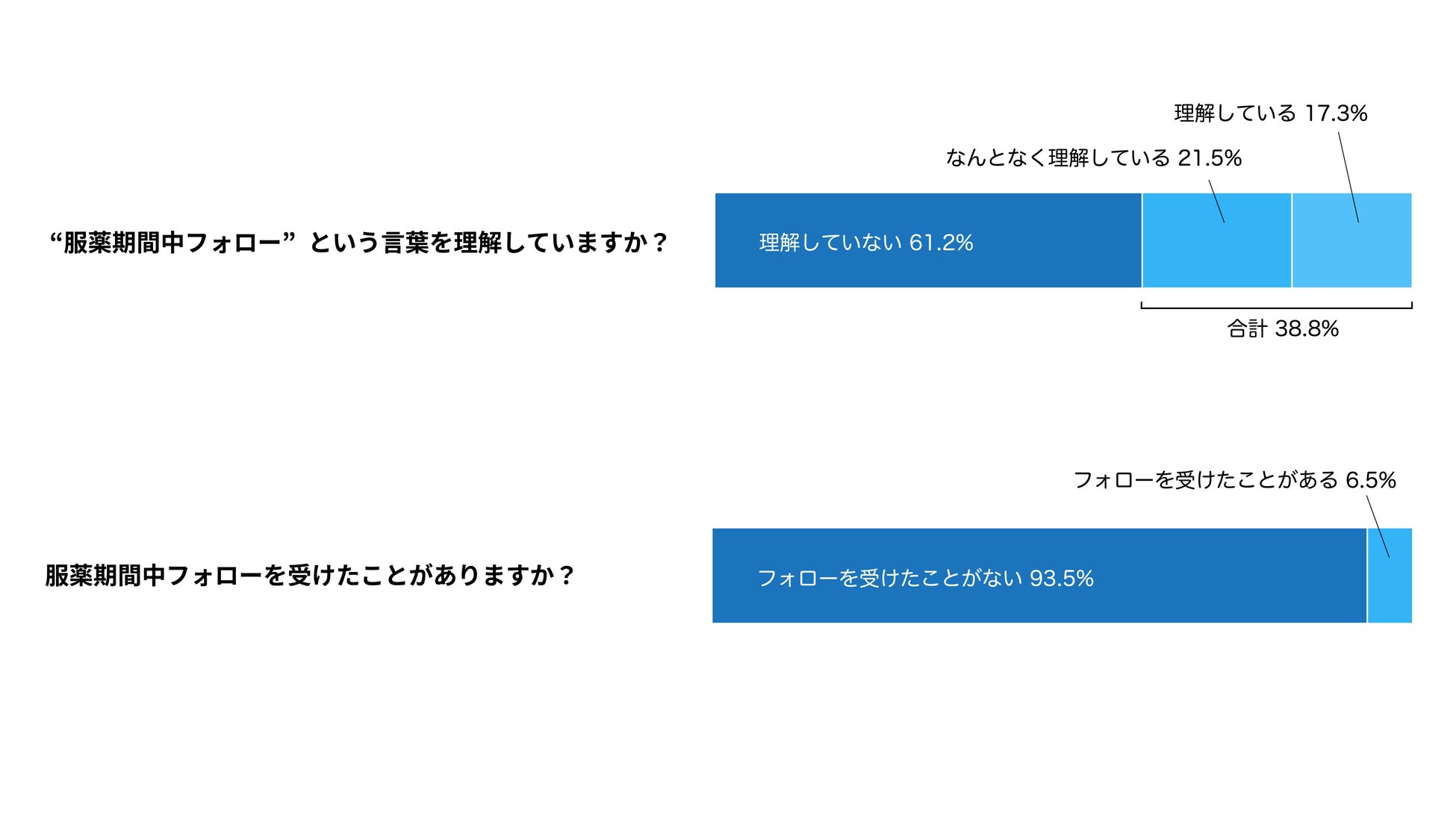 “服薬期間中フォロー”の言葉を「理解している」および「なんとなく理解している」を合わせると、全体の38.8%となりました。