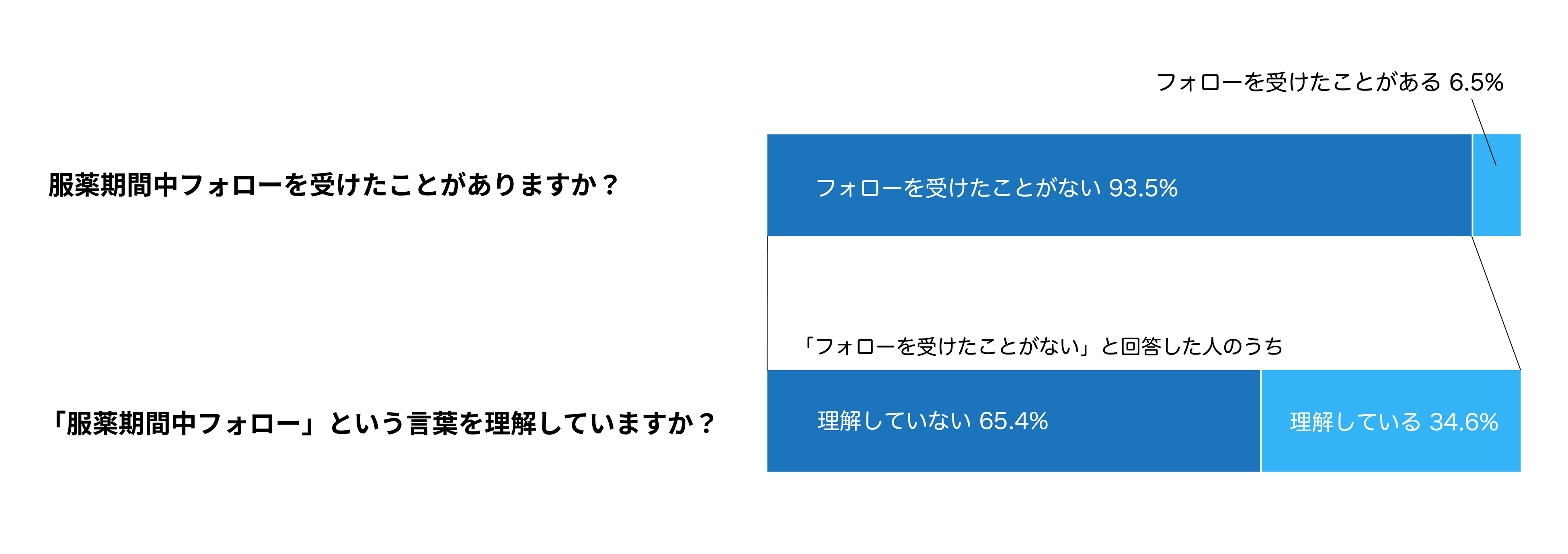 服薬期間中フォローの認知率4割、うち「メリットを感じる」回答が9割
