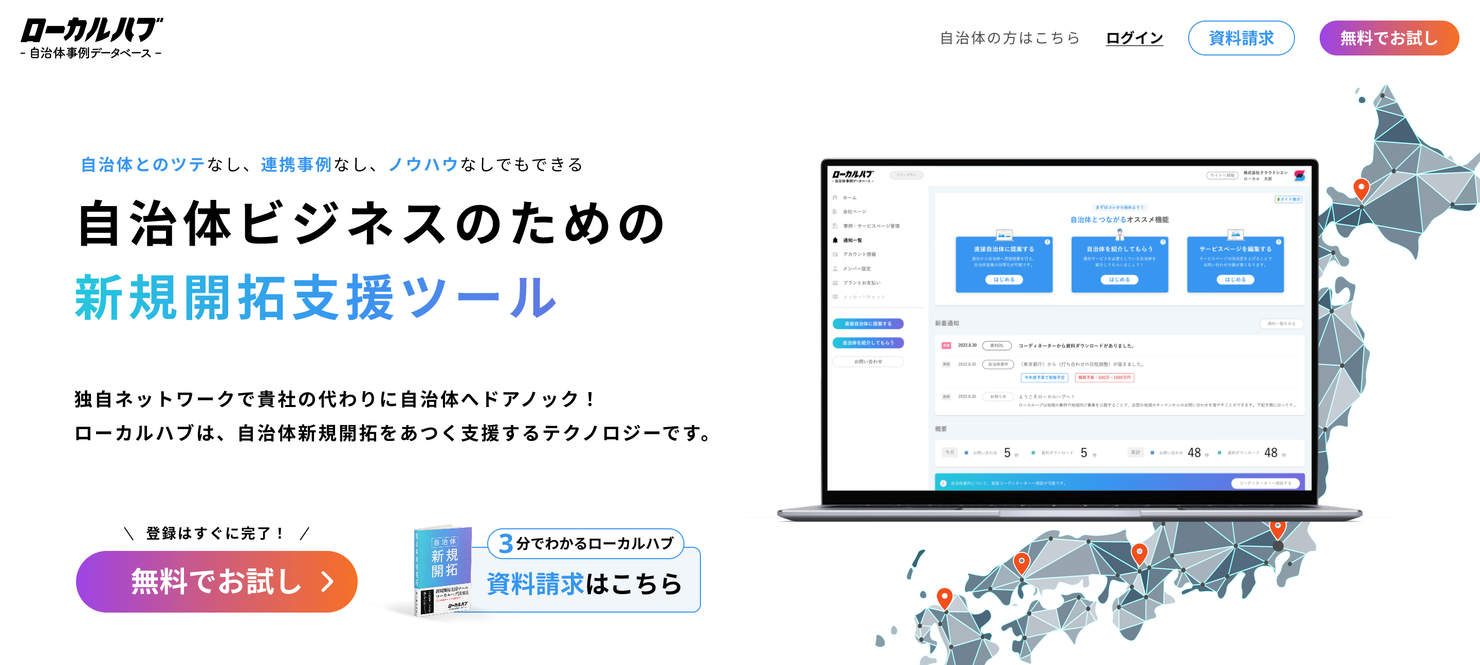 独自ネットワークで全国の自治体へドアノック!地方創生に取り組む事業者の自治体新規開拓をあつく支援するテクノロジーへと生まれ変わりました。