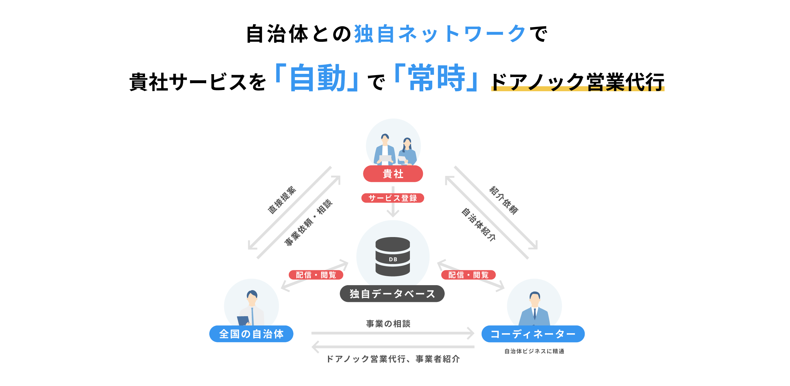 「信頼関係(独自ネットワーク)を活用し、自治体新規開拓を行えます」