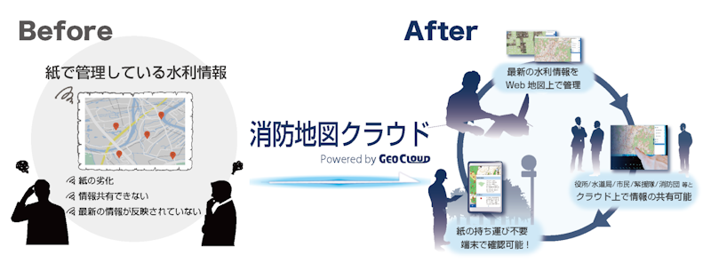 脱・紙地図。インターネット環境があればOK | インターネットに接続できればどこからでも利用可能なので、紙地図の持ち運びが不要になります。同時に何人でも、どこからでも最新の情報を閲覧できます。 |