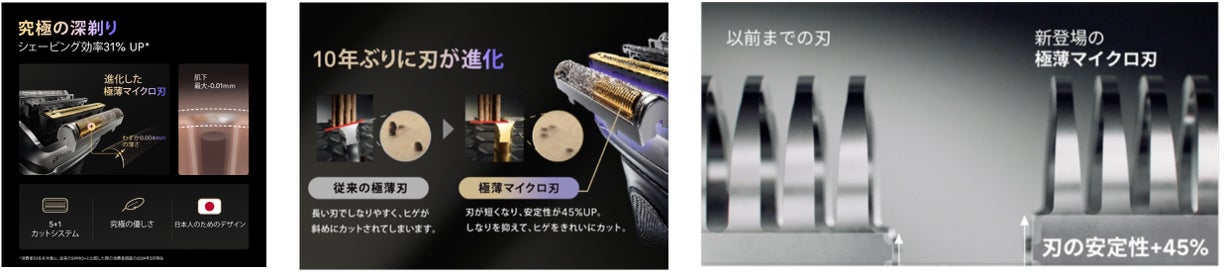 このような状況を踏まえ、深剃りを求める一方で、肌への負担を避けたいという男性の葛藤に注目し、深剃り刃に革新を起こした新「シリーズ9 Pro+」を発売します。本製品は、発売以来初めてとなる深剃り刃のアップグレードにより、よりなめらかに肌下-0.01mmの深剃りを叶える、驚きの「ひと剃り」を実現。男性のシェービング体験そのものを変える新商品です。