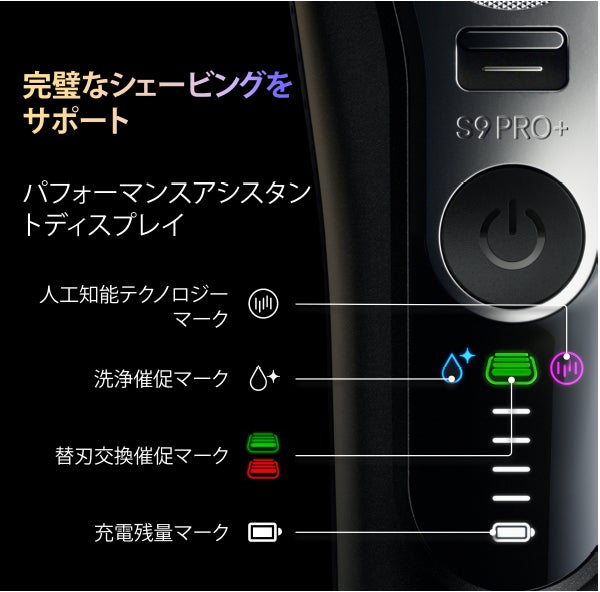 【ポイント3】:パフォーマンスアシスタントディスプレイ搭載。常に最高のシェービングパフォーマンスを維持