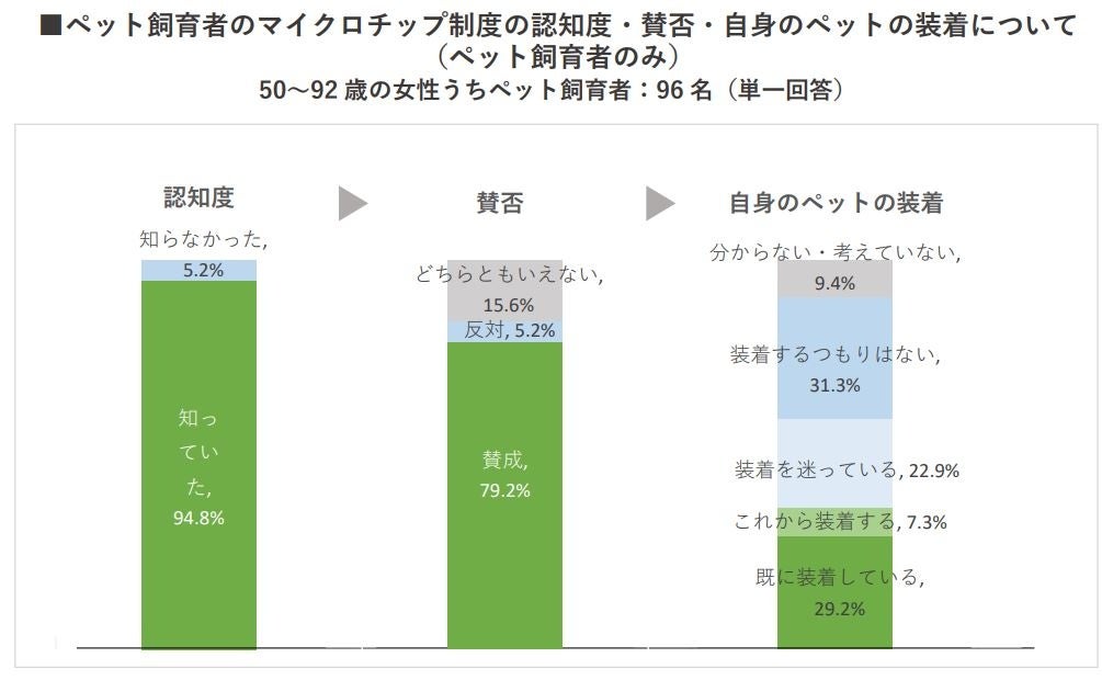 「シニア女性のペット飼育に関する意識と実態調査」ペット飼育率は全世帯平均と同水準。今年6月に施行された「マイクロチップ装着に関する制度」についての認知度は 80%超、75%が賛成派。