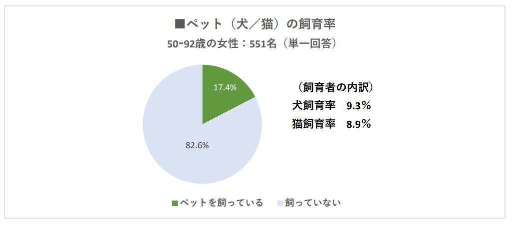 女性誌部数 No.1(※1)の雑誌「ハルメク」をグループで発行する(株)ハルメクホールディングス(本社:東京都新宿区、代表取締役社長:宮澤 孝夫)のハルメク 生きかた上手研究所は、50~92 歳の女性 551名を対象に「シニア女性のペット飼育に関する意識と実態調査」を WEB アンケートにて実施いたしました。