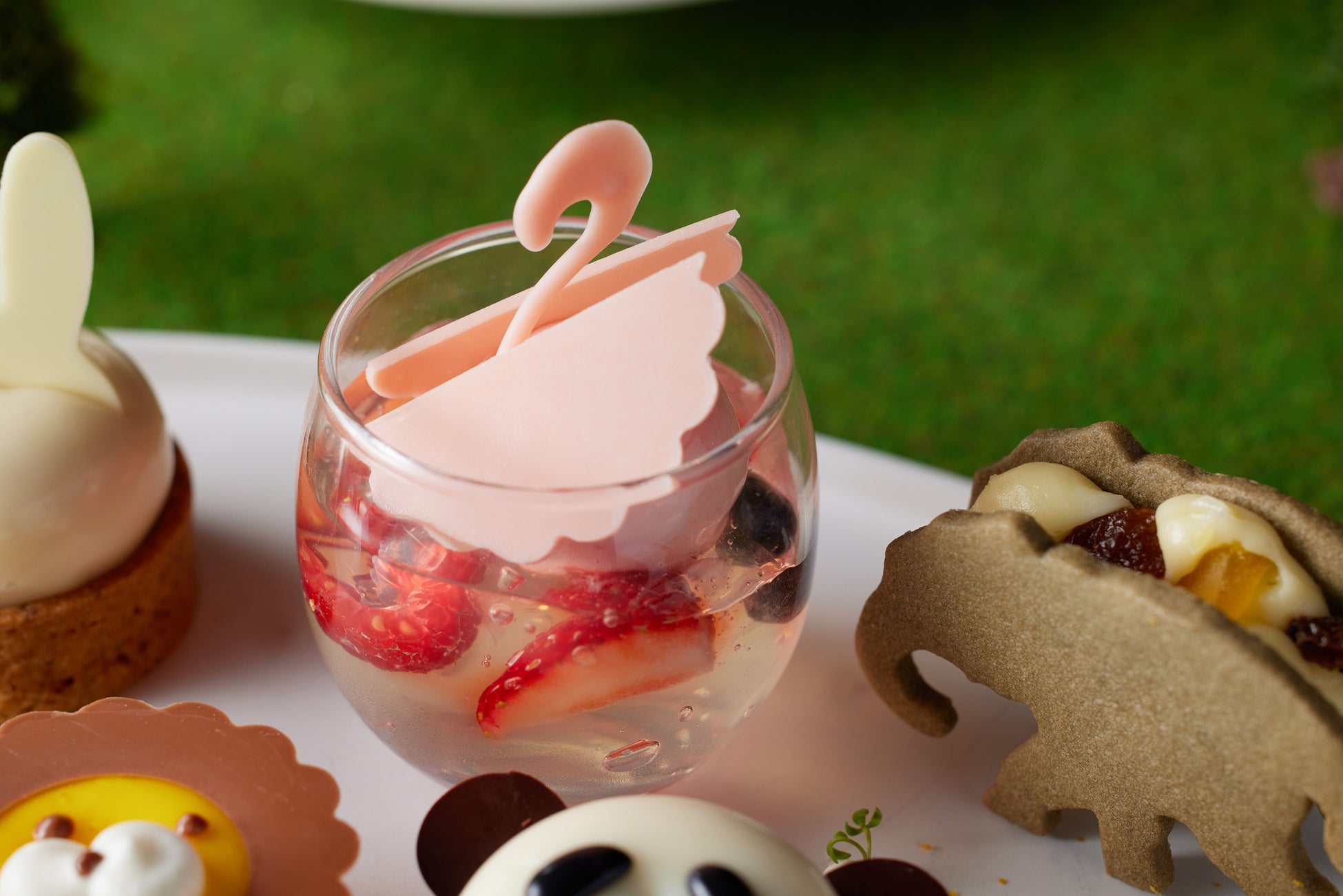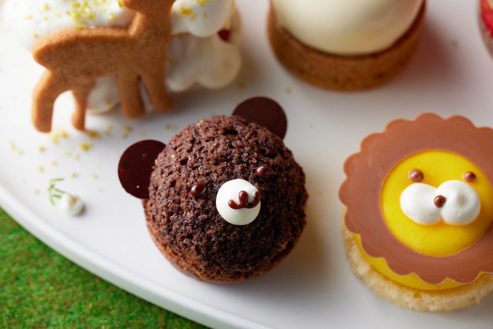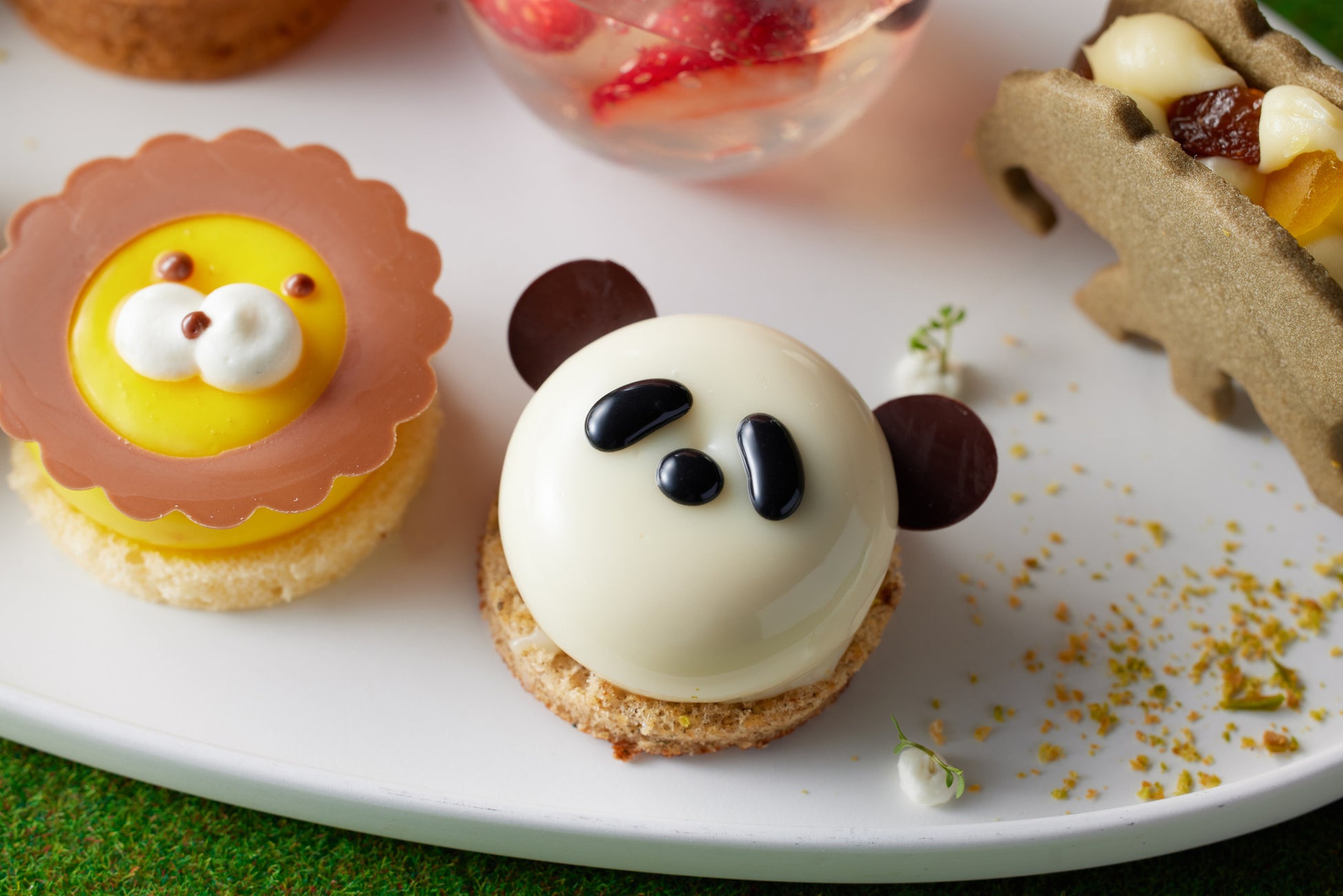 「NAMIKI アニマル アフタヌーンティー」では、7種類の動物をモチーフにしたスイーツとサステナブルサーモンを使用したセイボリーをご用意いたしました。パンダやライオン、うさぎなど様々な動物たちをそれぞれ違う角度から表現し、賑やかで躍動感のある一皿に仕上げています。味はもちろんのこと、食べるのがもったいないほどに可愛らしい見た目をお楽しみください。