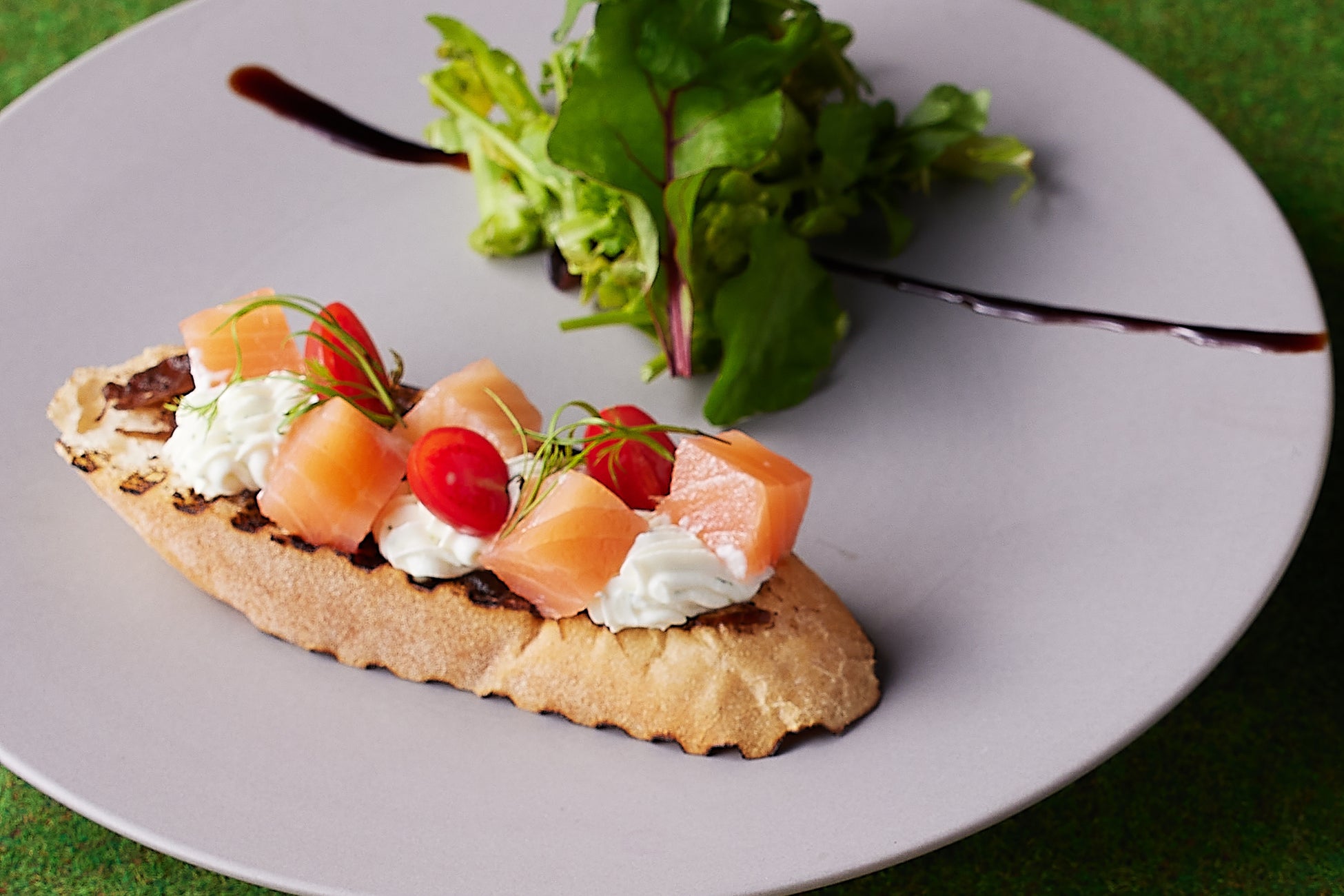 サステナブルサーモンのタルティーヌとクレソンサラダ