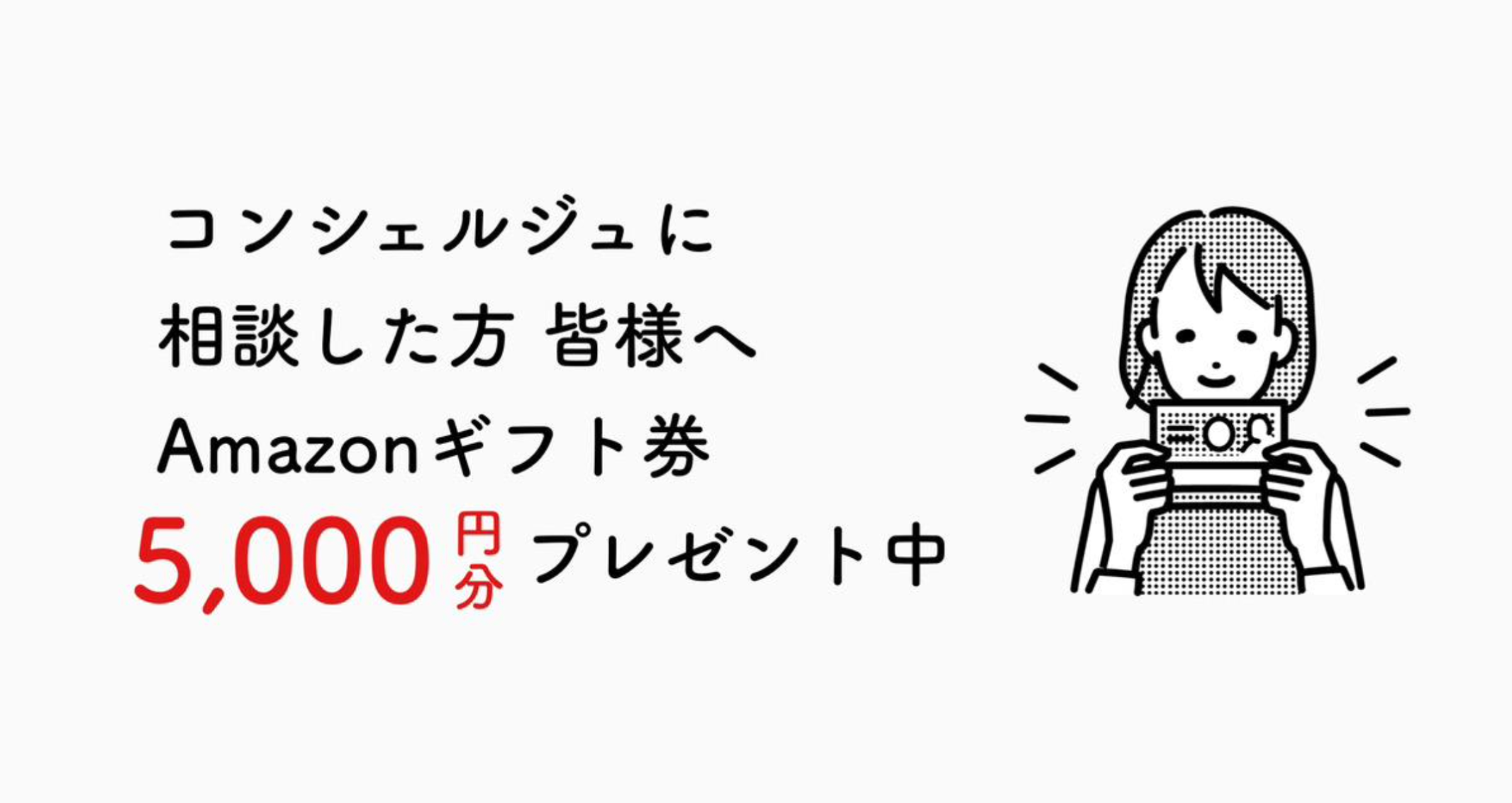 期間中に、「ルムコン」に在籍するコンシェルジュに、「来店相談」「オンライン相談」「現地内見」いずれかを行うことでAmazonギフト券5,000円分をプレゼントいたします。
