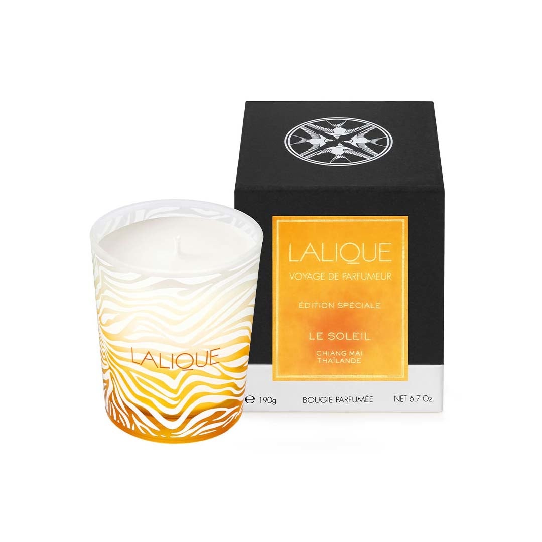 世界各地の印象的な情景を切り取り、詩情あふれるストーリーを描き出すラリックのホームフレグランスコレクション《ヴォヤージュ ドゥ パフュムール》。新たなキャンドル《ソレイユ》は、エキゾチックで情熱的なタイ北部の都市チェンマイを訪ねます。香りの軌跡をたどる遠く離れた彼の地への旅、湧き上がるイマジネーション…。