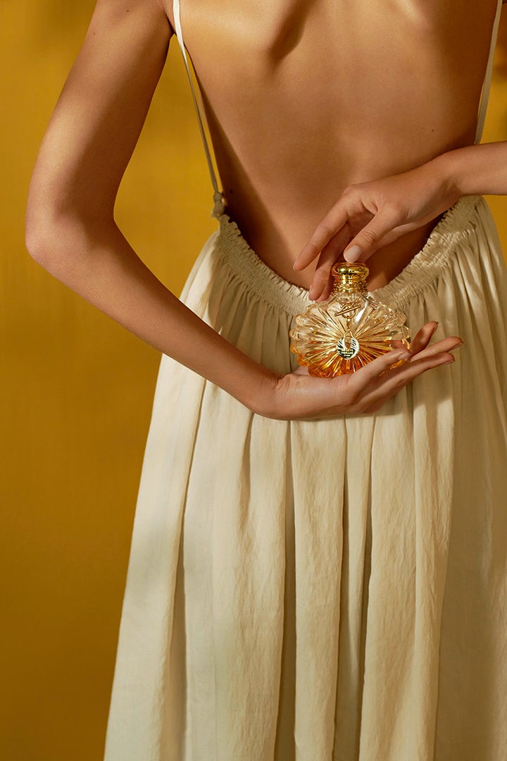 インスピレーションは輝く太陽の煌めき。燦々と降り注ぐ光を浴びて、鮮やかに駆け抜ける。《ラリック ソレイユ ヴィブラント》は、美しくしなやかな女性を映し出す、輝く太陽の香りです。ありのままの美しさを呼び覚まし、自然と共にあること。愛すべき全ての経験は、素晴らしい光に包まれています。センシュアルな輝きをまとい、熱を帯びて。それは、活気に満ちた聡明な女性に贈る賛美です。