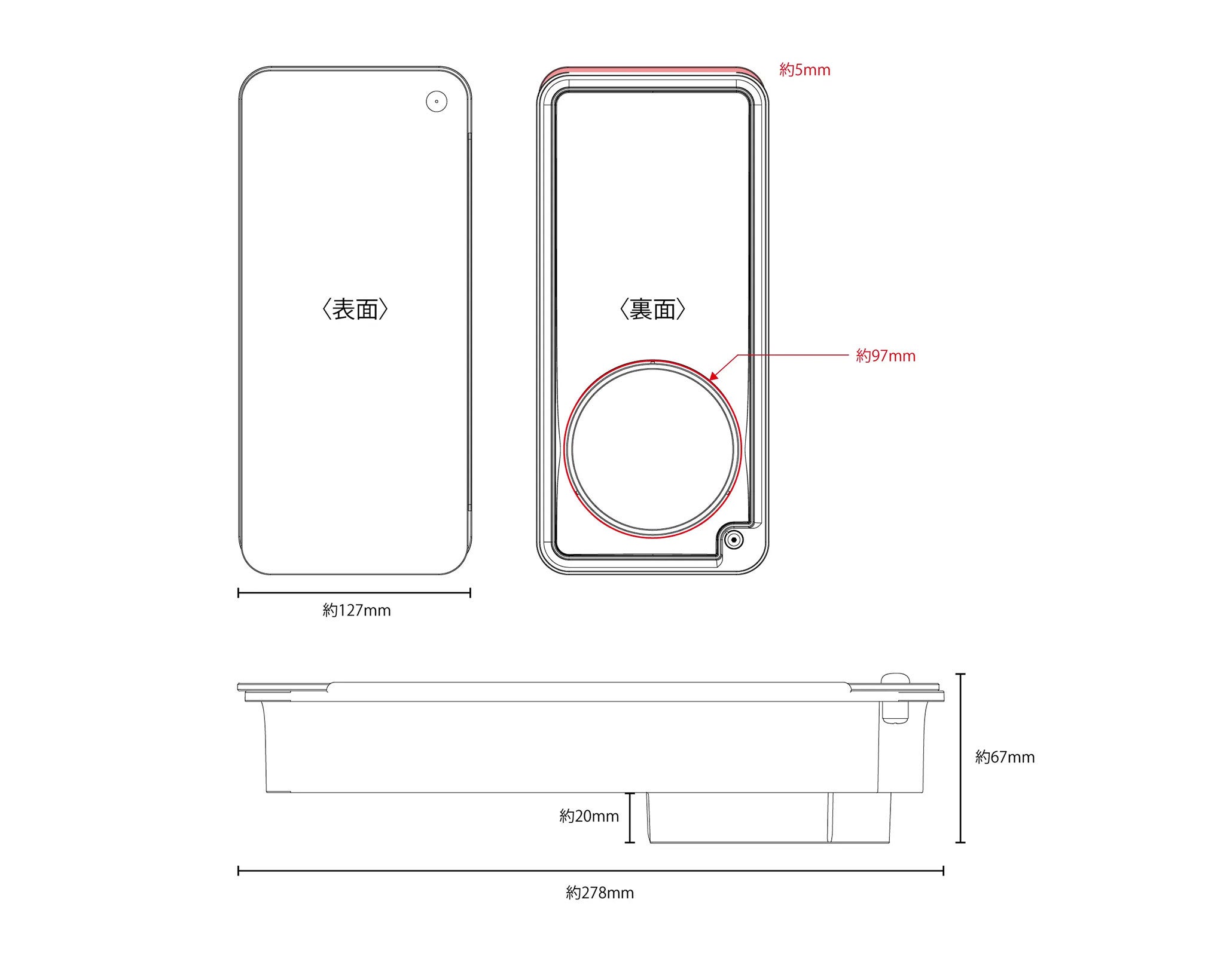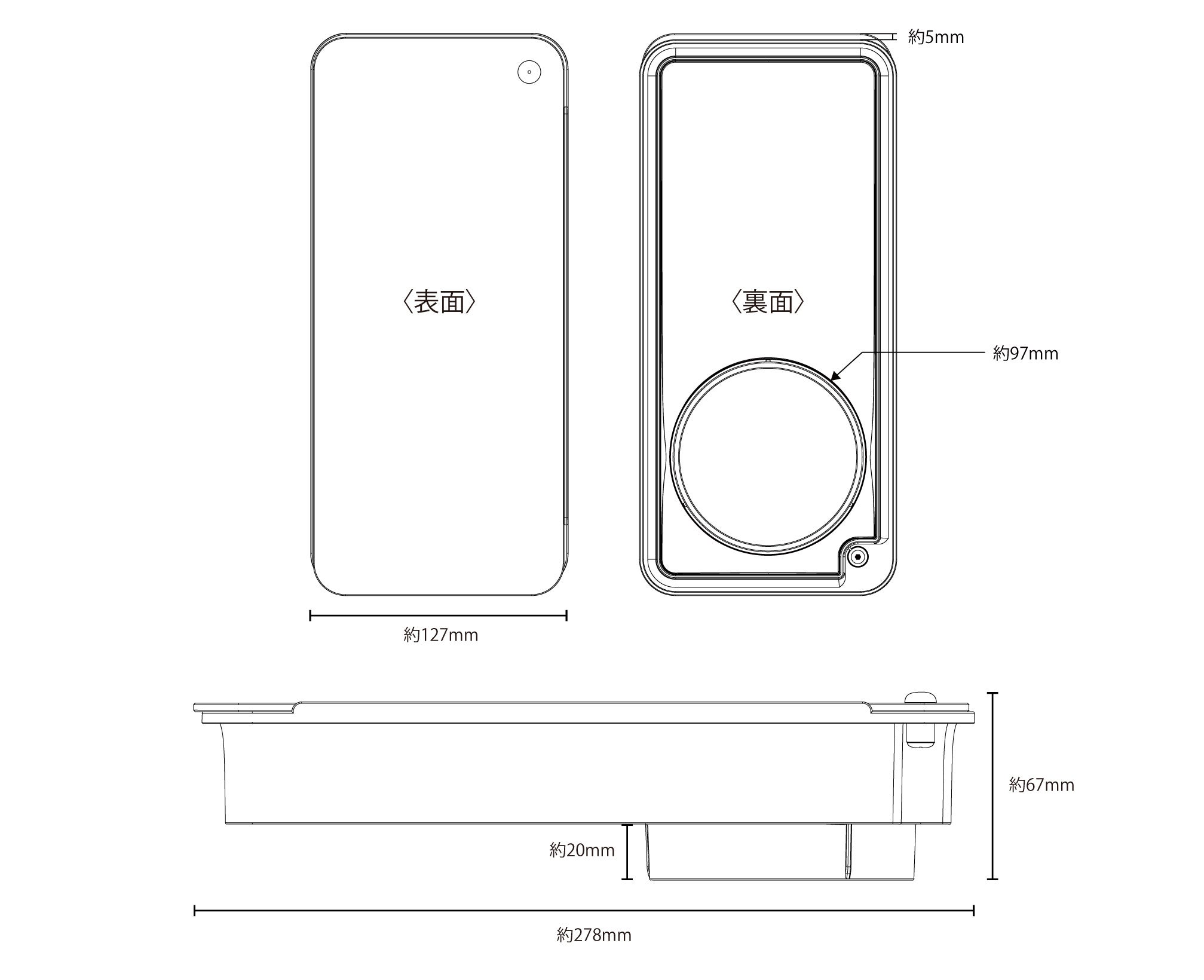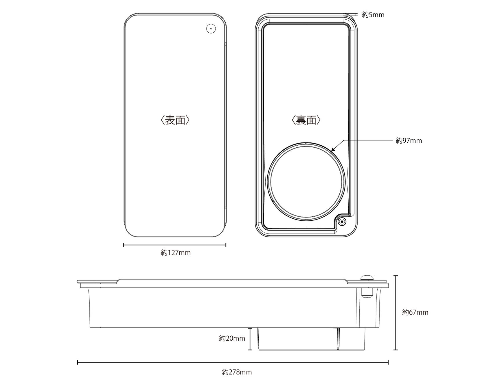 外形寸法:約127(幅)×278(奥行)×67(高)mm