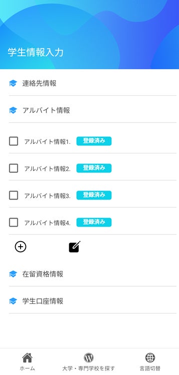 また「学生口座情報」を学生が報告できるようにしたことで、在留期間更新のアルバイトに関わる業務をすべてオンラインで完結させることができます。