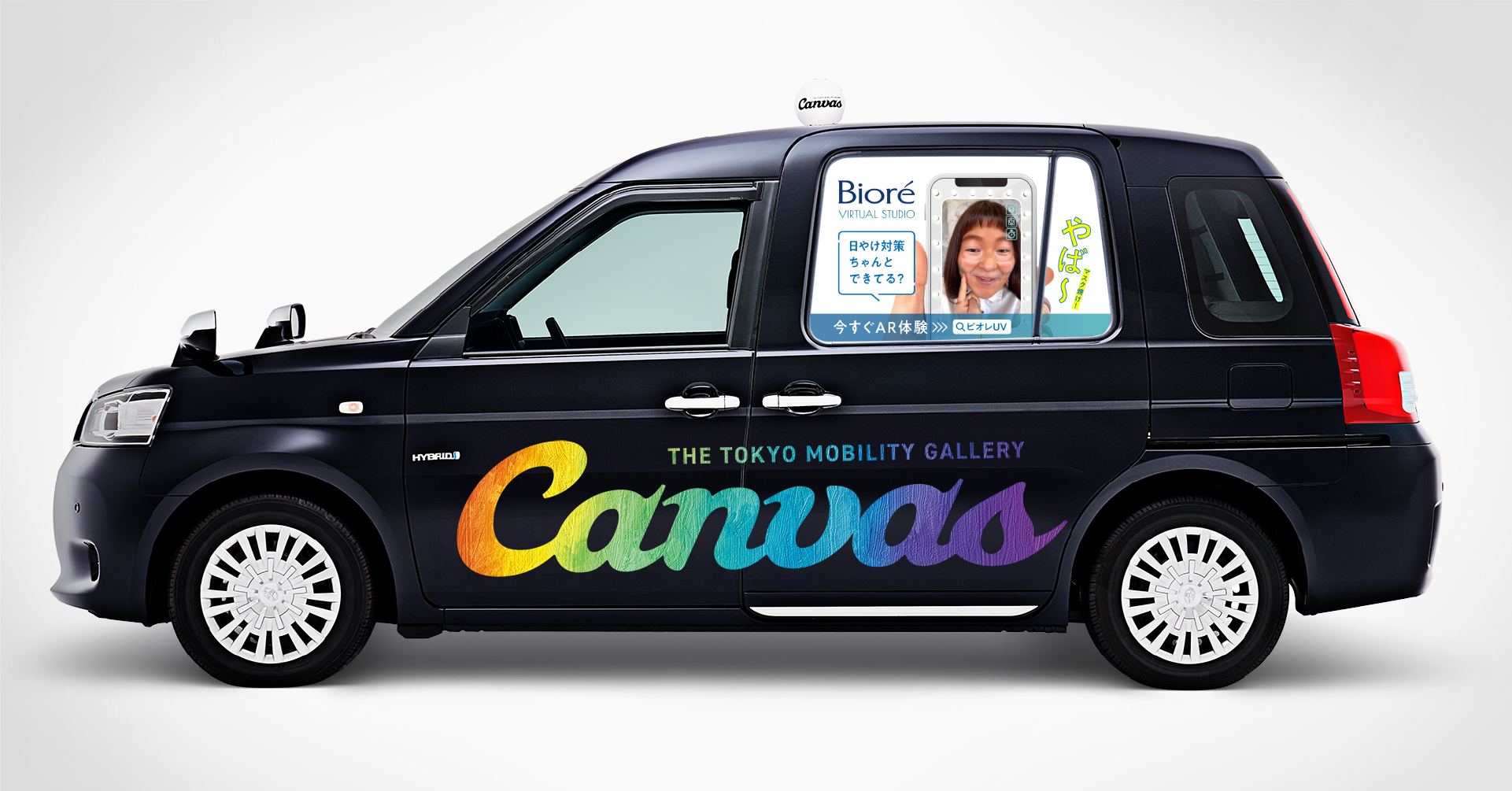 モビリティテックや動画マーケティング事業を展開する株式会社ニューステクノロジー(本社:東京都港区、代表取締役:三浦純揮、以下ニューステクノロジー)とタクシーアプリ「S.RIDE」を提供するS.RIDE株式会社(本社:東京都台東区、代表取締役:西浦賢治、以下S.RIDE)は、 両社が運営する国内唯一のモビリティ車窓メディア「THE TOKYO MOBILITY GALLERY Canvas」(以下「Canvas」)において、ウェザーニューズ提供の紫外線情報と連動して広告クリエイティブを日替わりで掲出する花王「ビオレUVタクシー」が、 本日4月18日(月)~4月24日(日)まで、 都内を走行することをお知らせします。