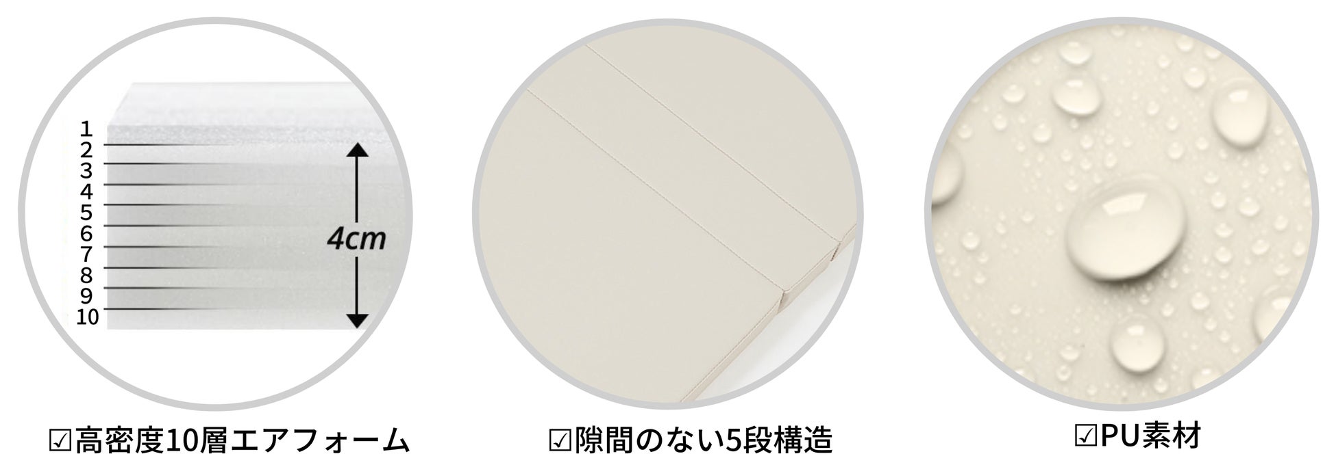 厚さ4cmの高密度10層エアフォームで床への振動や騒音を軽減。集合住宅の階下への配慮に。