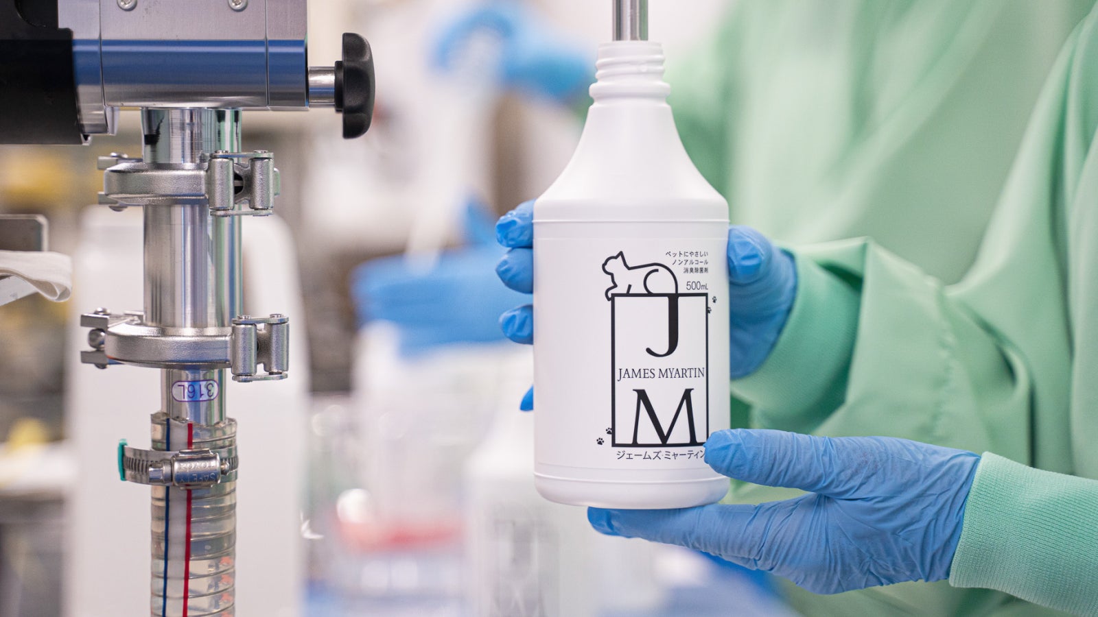 今回の製品開発にあたり、“家族と暮らす空間にふさわしい衛生用品”という理念のもと、飲食や医療の現場でも採用されるプロユース除菌ブランド「JAMES MARTIN」との協業が実現。“大切な存在のそばに置きたい”と思えるケア用品を作りたいというCatlog ケアのコンセプトと品質基準に合致した製品として「ジェームズ・ミャーティン」が誕生しました。