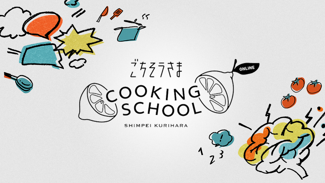 まずはYouTubeライブ配信を観ながら「自分ならどうするか?」と考えるのもよし。そしてその後は、是非「ごちそうさまクッキングスクール」の生徒として栗原心平と共に、自分で考えたオリジナルレシピづくりというクリエイティブ脳を養う機会に挑戦していただければと考えています。