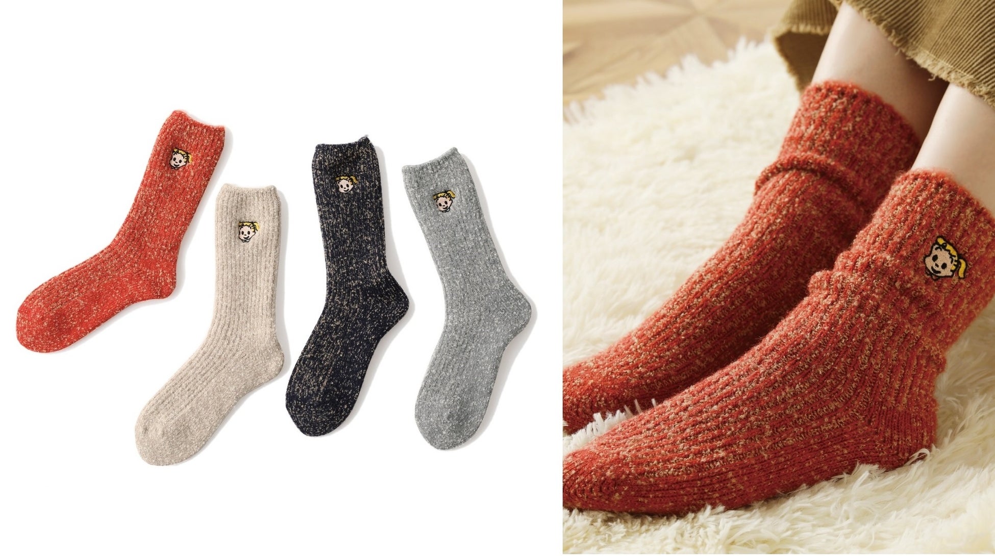 裏起毛でふわふわあったかい履き心地のルームソックス。ジルの笑顔と一緒に過ごせば、秋冬のおうち時間もハッピー。