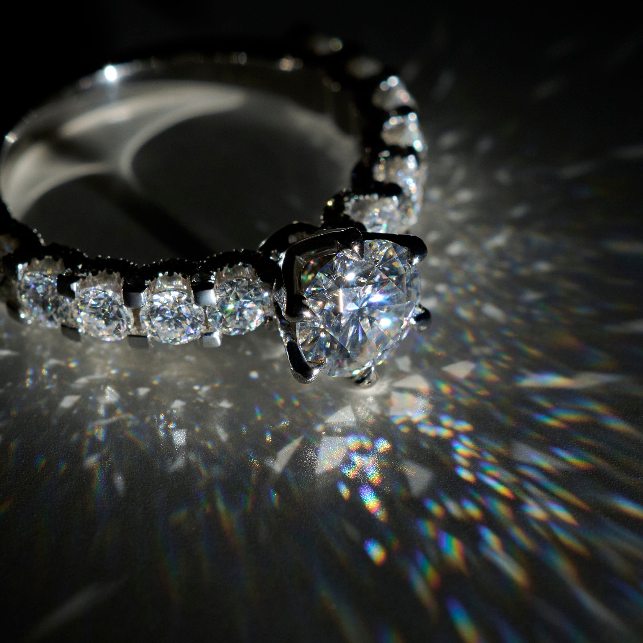 モアサナイトは、ダイヤモンドを超えるファイアと屈折率から「ダイヤモンドの約2.5倍輝く(*1)」とも言われる、眩い輝きが特徴の人工宝石です。