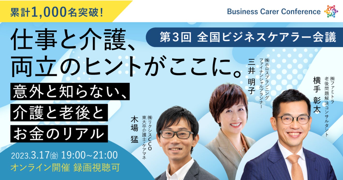 3月17日、現役ビジネスパーソンと介護プロ・専門家が結集した『全国ビジネスケアラー会議 仕事と介護、両立のヒントがここに。』開催のお知らせ