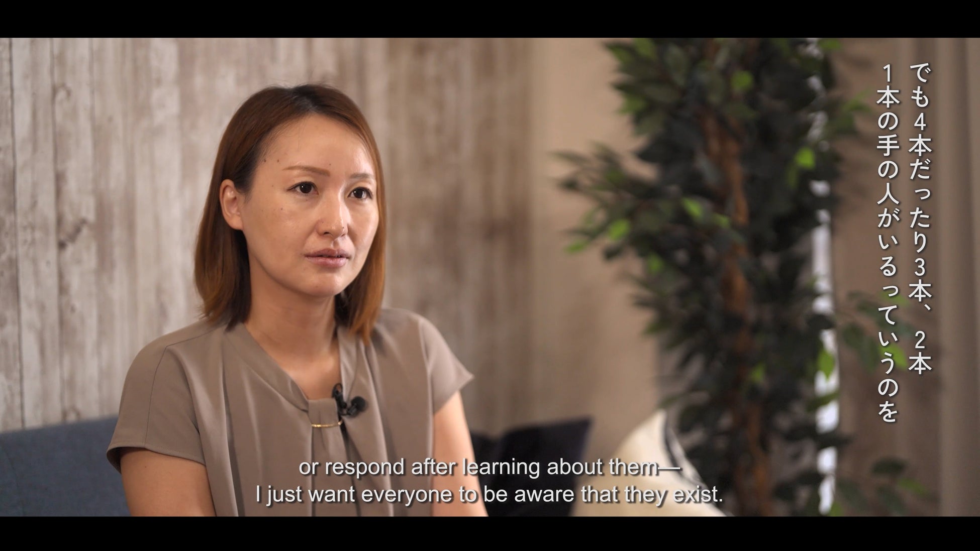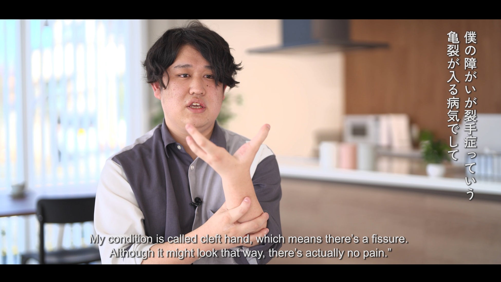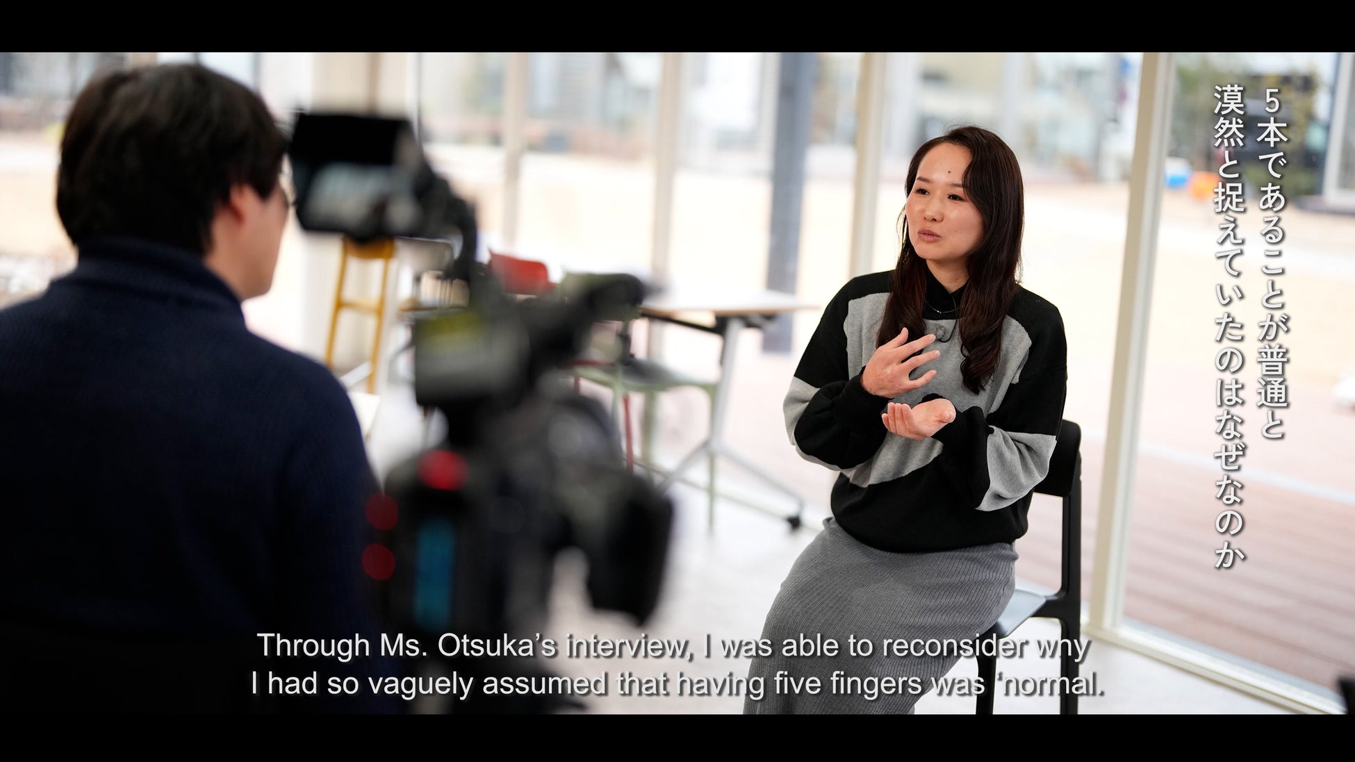 生成AIの現場ではよく5本指にならないトピックスが話題になります。エンジニアは、5本指にならない指を5本指にするために大量のGPUや電気代を使ったりしますが、果たしてその行為はただのエラー修正、と記述して良いものなのか?「そこには排斥されているマイノリティの暮らしがあるのではないか。」窪田はそう考え、生まれつき5本指ではなく暮らす裂手症の当事者やご家族、医療従事者の方々に話を伺い、ドキュメンタリー形式の映像作品を制作しました。