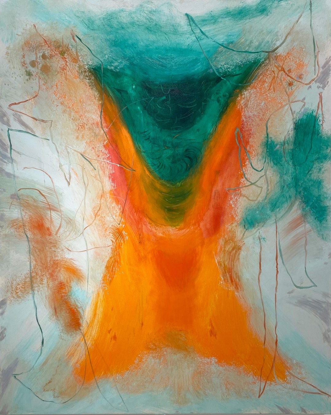 本展のタイトル「Calendula」は会期時期に最盛期となる季節の花、金盞花(キンセンカ)からつけられています。キンセンカは色鮮やかなオレンジ色や黄色の花を咲かせ、見た目のボリュームも刺激的でエネルギーをもらえる花でありまた、”献身"、"静かな思い"、"悲しみ"といった様々な感情を表す花言葉を持つ印象的な花でもあります。この花のように石山、フカミの両作家の作品は、鑑賞者に多様な感情や創造性を与える表現力があり、その感情が自然に自身の体験とも混ざり合い、観た方に余韻を持たせたり想像を膨らませてもらうような感覚があります。