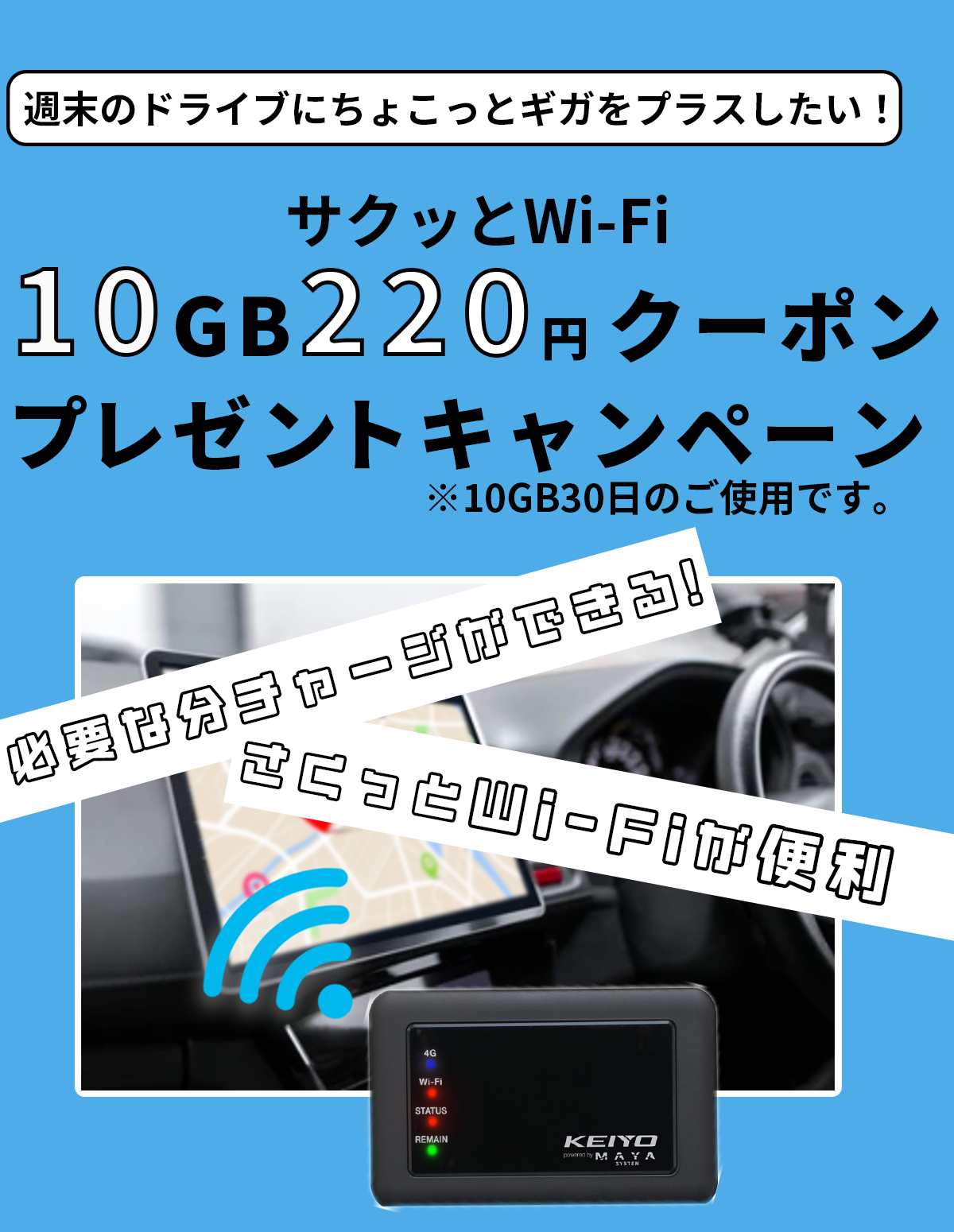 【期間限定キャンペーン】リチャージ10GBお買い得クーポンをプレゼント!本日よりKEIYOのサクッと使える車載対応Wi-Fiルーター「AN-S117」を購入で10GBが220円で使えるクーポン進呈!!