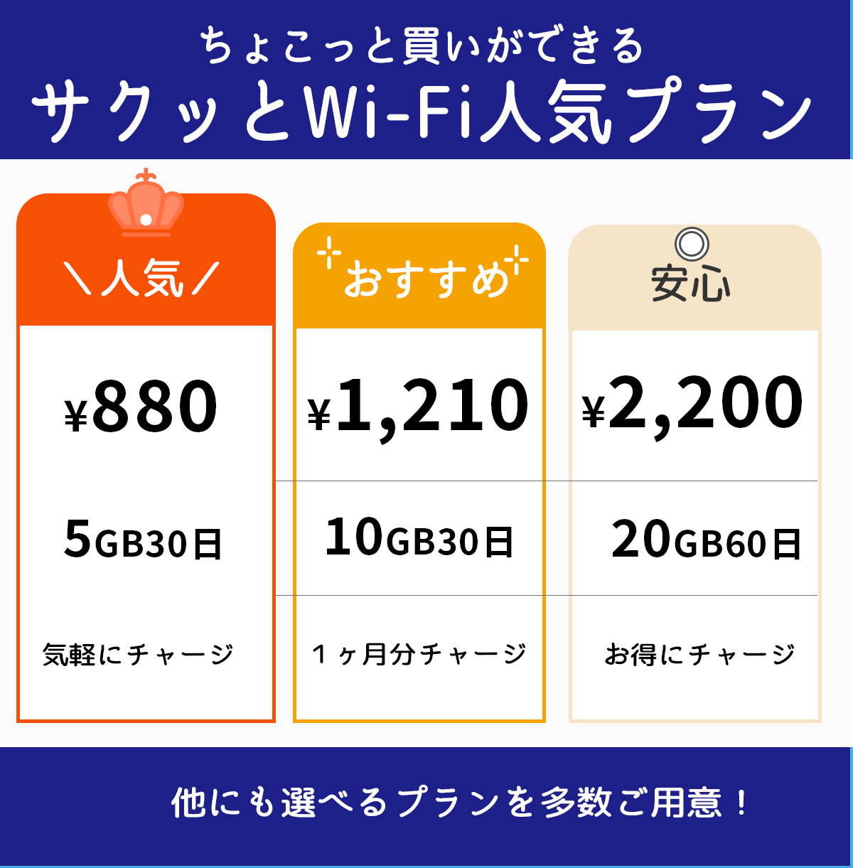 ★サクッとWi-Fiで一番人気の10GB/30日通常1,210円が220円でリチャージできます。