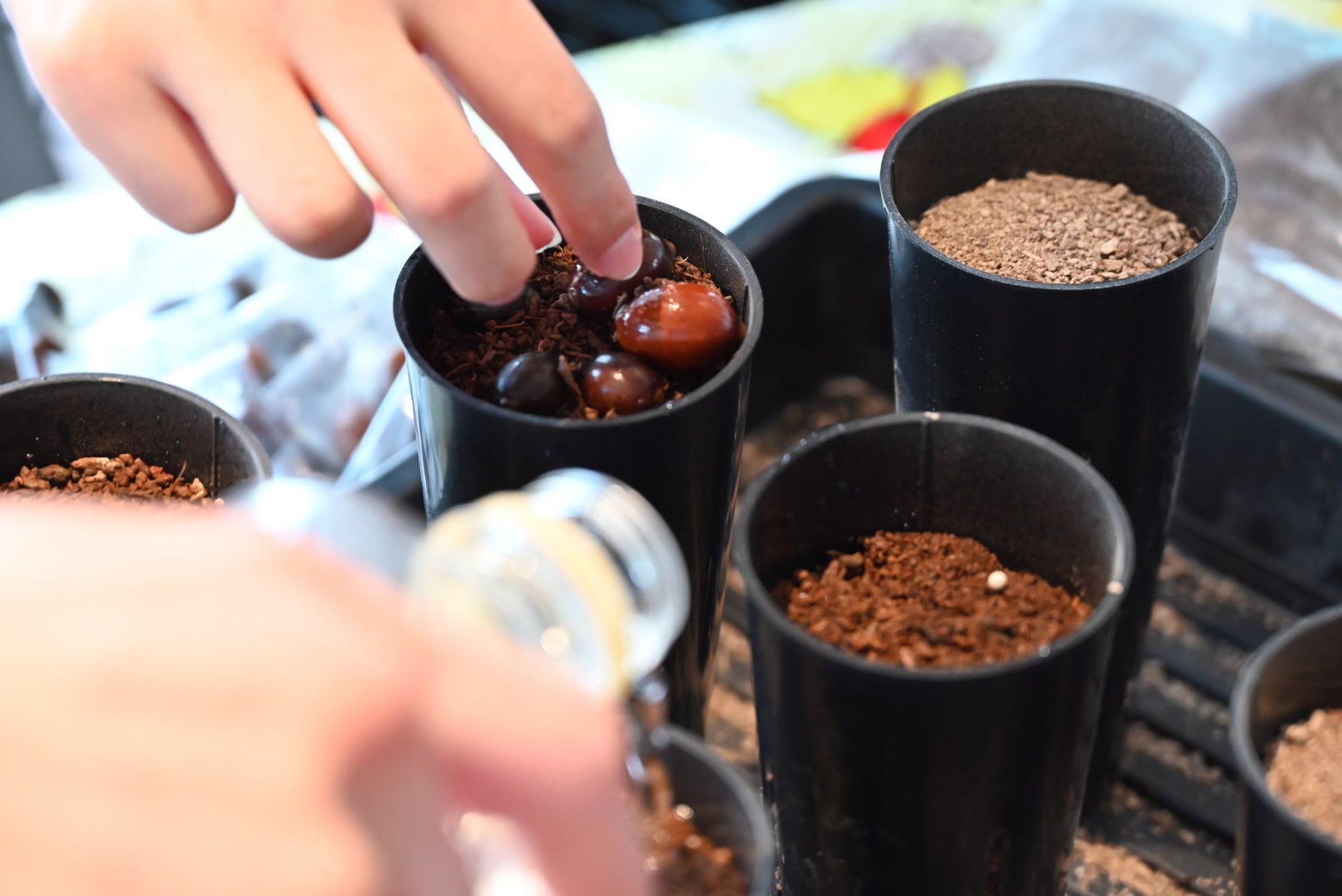 「戻り苗」はオフィスなどの室内で観葉植物としてどんぐりの苗木を育て、2年後に山へ植樹することによって、地域の森林を再生し、生態系の保持や土砂災害の発生しにくい森づくりに貢献する取り組みです。オフィスにいながら未来の森づくりに携わることができ、森林保全活動をより身近なものとして感じられることが特長です。