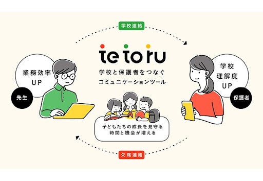 tetoruは、「手と手をとりあう」をコンセプトに2022年4月にリリースされた、小中学校と保護者をつなぐコミュニケーションツールで、現在では全国小中学校の1割超にあたる約3,800校の学校に導入され、児童生徒登録者数も既に150万人を超えています。
