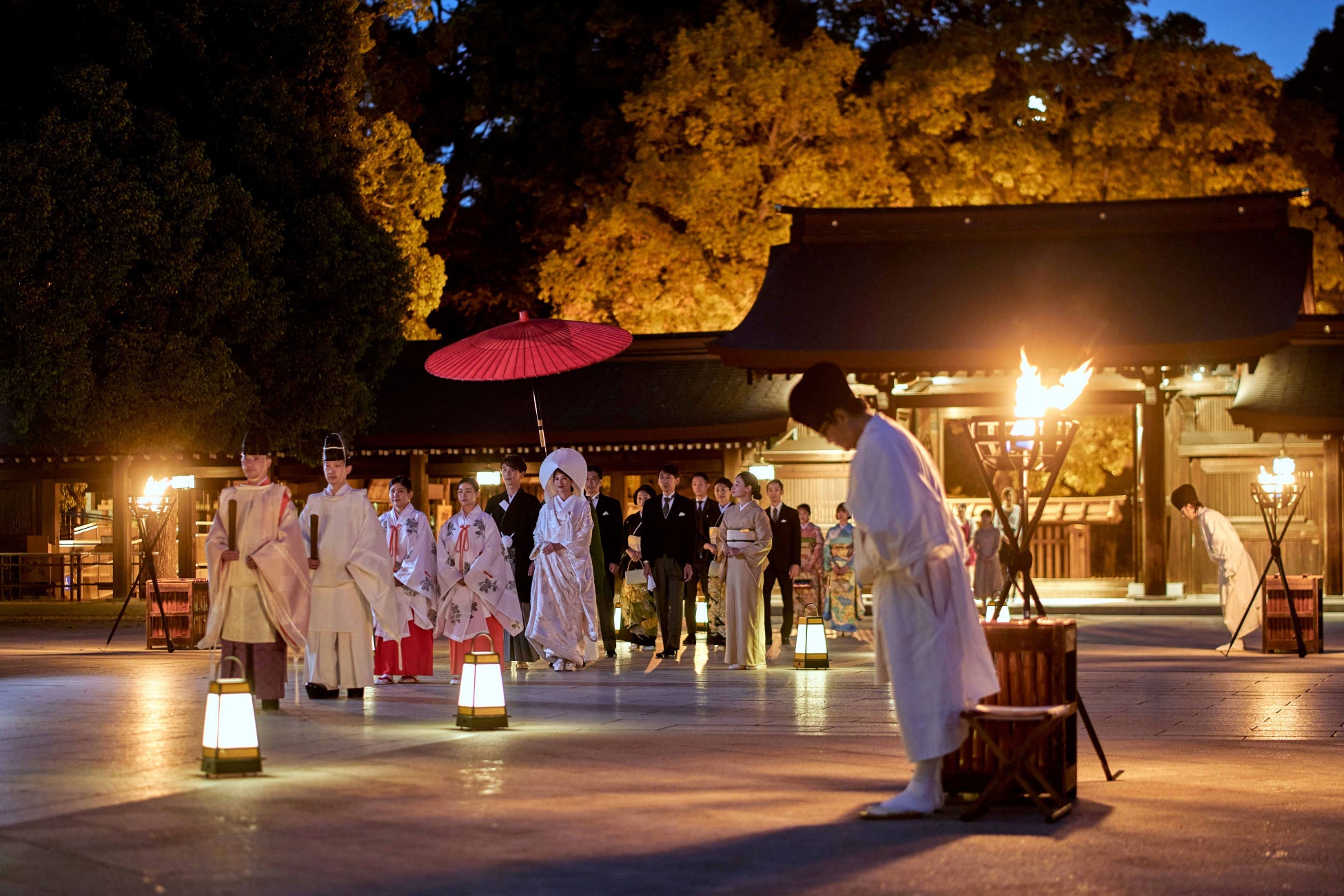 【明治記念館】“幻想的な夕刻の明治神宮での神前挙式をご見学” 2日間限定開催の「灯り参進」見学ブライダルフェアをご案内します