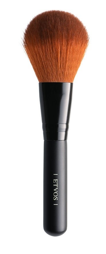 先が少し尖っている平型のフェイスブラシは、ルースパウダーやプレストパウダーにおすすめ。毛量が多く、毛が長いためしっかり粉含みし、肌あたりのやさしいつけ心地。パウダーがつき過ぎることもなく、適度にツヤのあるふんわりとしたエアリーな仕上がりに。