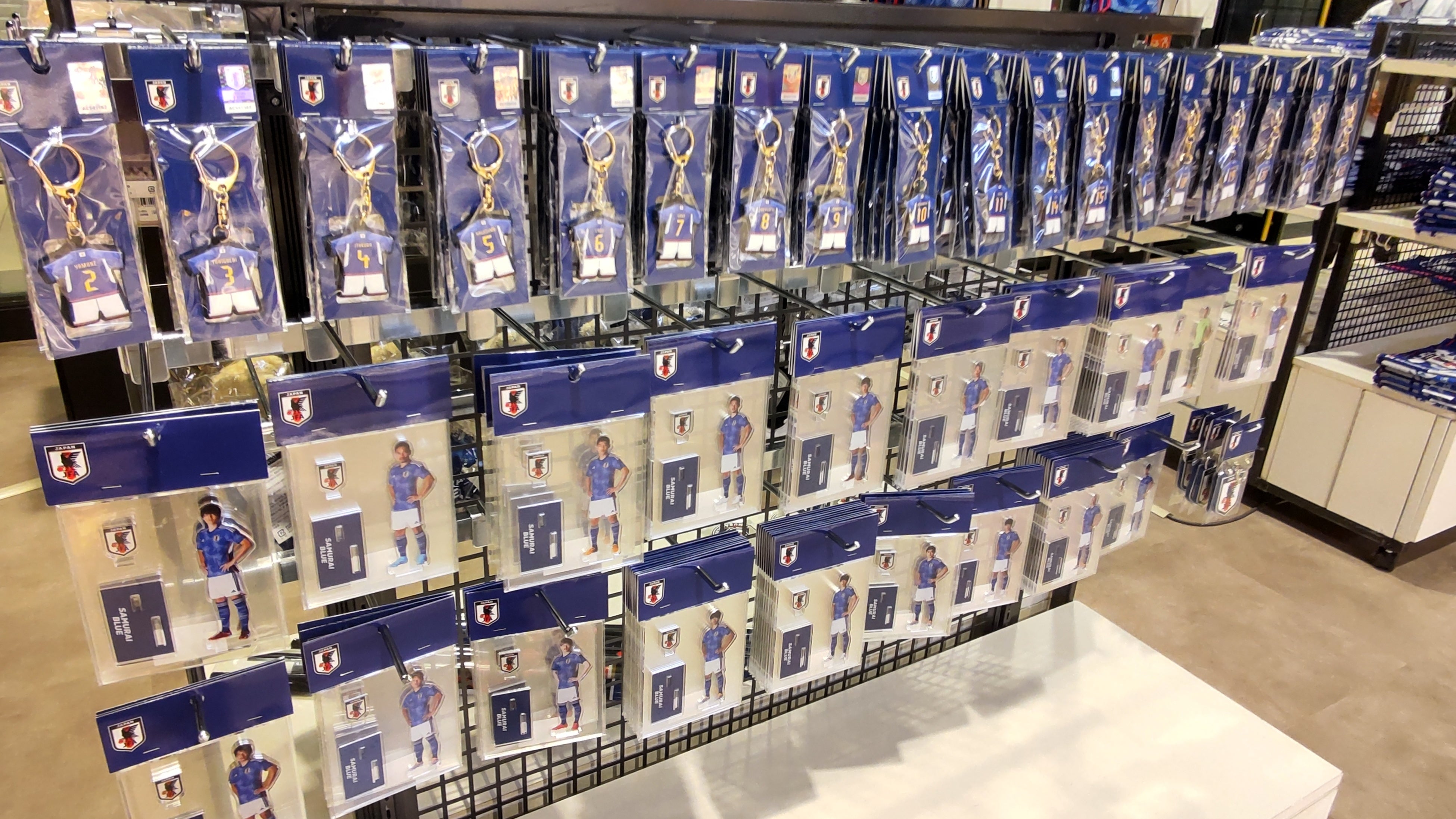 SAMURAI BLUE(サッカー日本代表)の2022年秋冬新商品が10月末より発売中です。スタジアムやテレビ観戦、パブリックビューイングの必需品であるユニフォーム、タオルマフラーやプレーヤーズTシャツなどの応援グッズ、SAMURAI BLUE(日本代表)選手の名前、背番号、写真が入った商品なども多数取り揃えています。是非、期間限定POP-UP STOREにて、実際に商品をお手に取って確認し、ご購入下さい。