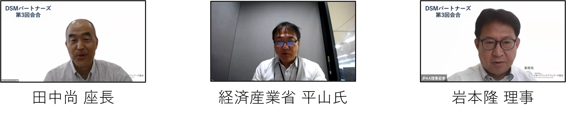 会合の後半では、座長の田中尚(東芝デジタルソリューションズ株式会社)よりDSMパートナーズの中期的な計画と各フェーズにおけるアウトプットおよびディスカッションテーマについての事務局案を提示し、参加者の皆様と意見交換を行いました。これを踏まえて第4回以降の会合では、個別のテーマについて具体的なディスカッションを開始していく予定です。