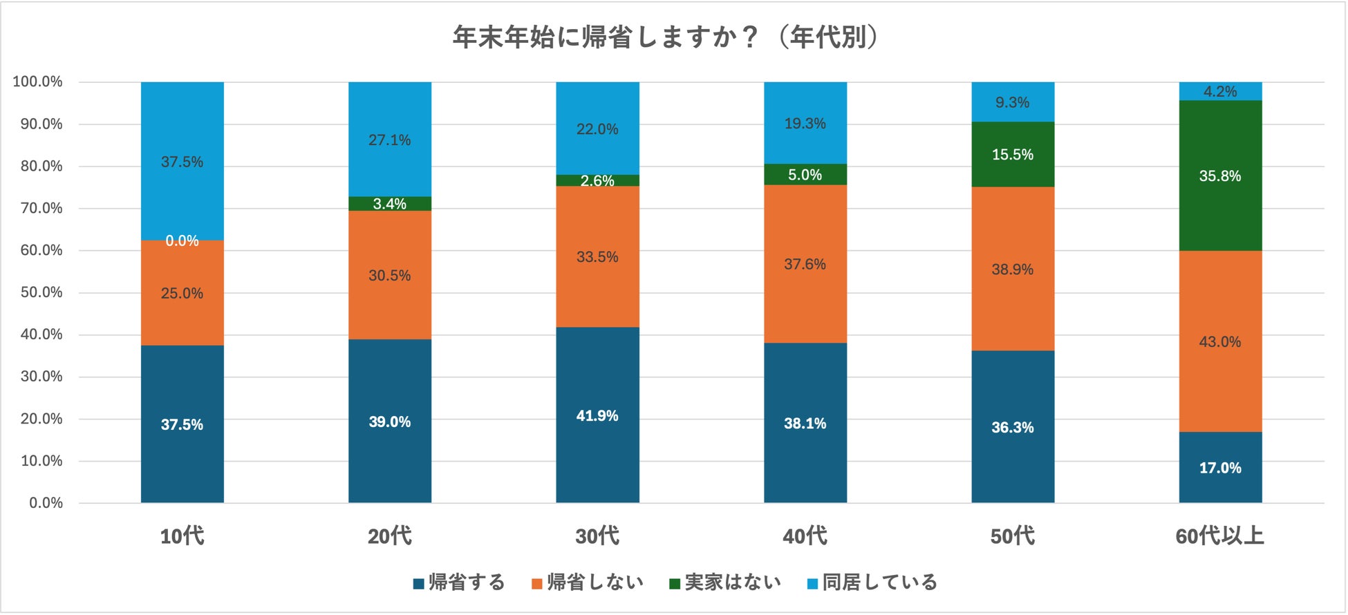 ・今年の年末年始に帰省する人は約3割、30代が約4割で最多