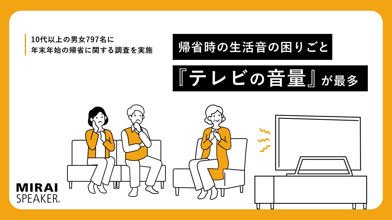 「100年のスピーカーの歴史」に聞こえにくさの解消という新しい視点を提示し、特許技術「曲面サウンド」をもってサウンド領域に新たな価値と可能性を提供する株式会社サウンドファン(所在地:東京都中央区、代表取締役社長:山地浩、以下:サウンドファン、以下「当社」)は、10代以上の男女797名に、今年の年末年始の帰省に関する調査を実施し、その結果を発表いたします。